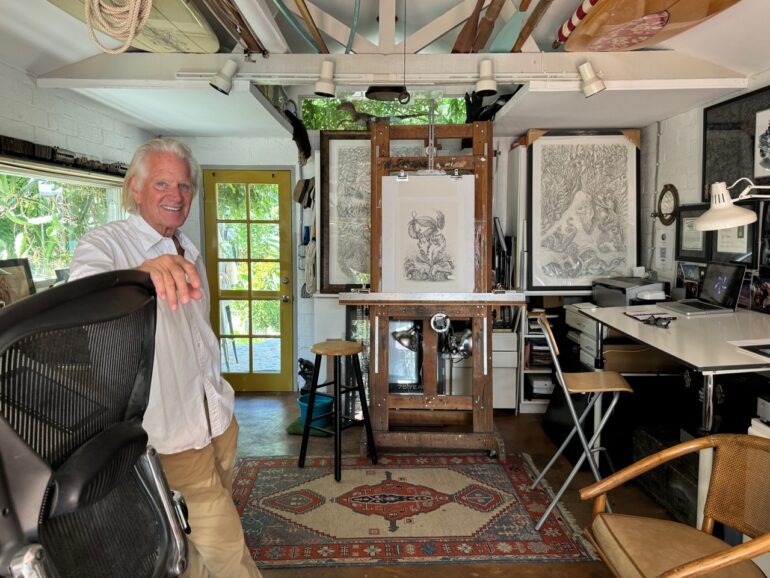 Painter Christopher Noxon, who creates “phantasmagorical landscapes” that have been featured at Sullivan Goss gallery in Santa Barbara.