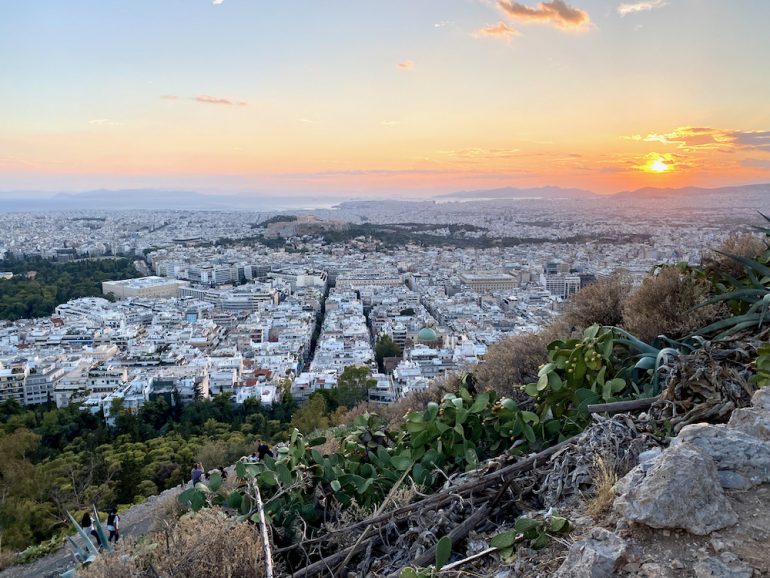 It seems appropriate to end with a sunset—this one as seen from the top of Lycabettus Hill. No matter what happens to me in this life, I know one thing: I will never pass up the chance to ride a funicular.
