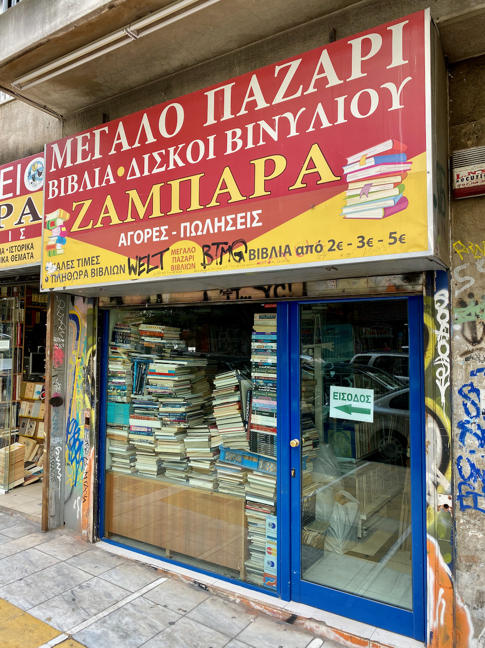 With that crossed off the list, we were free to do what we love to do, which is wander. Walking and observing makes me feel alive—and feeling more alive is one of the main reasons I travel. Forced to recap what we did in Athens, I have to admit that we ran errands: we tracked down an English bookstore, so I could get something to read on the way home. We went to the central market where we bought capers (and I saved a man’s life, but that’s a story for another day). We hunted down a souvenir for my niece. And we took photos of stuff most people would find unnoteworthy.