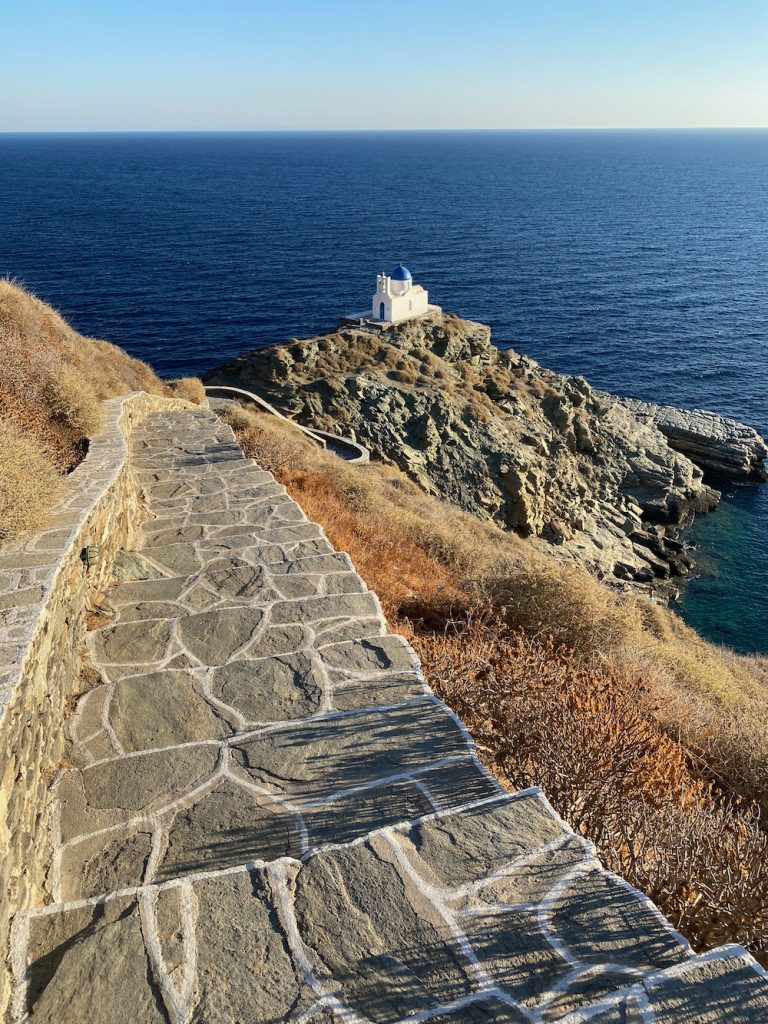 And from the hotel, you can walk to the town of Kastro—that’s it in the distance in the first photo below. We went in the morning, before anything was open and any tourists had arrived, and it was magical. Next time I will make a point of swimming in the cove off the church.