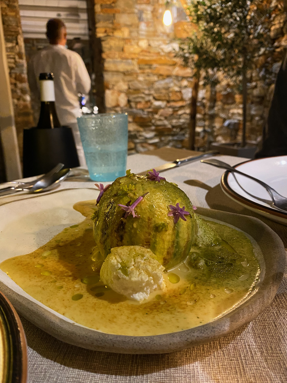 The hotel’s food was extremely good, better and much more interesting than almost everything we had in Athens. (Below: a dish of “semi-dried zucchini,” which sounds like something you should avoid but was actually fantastic.)