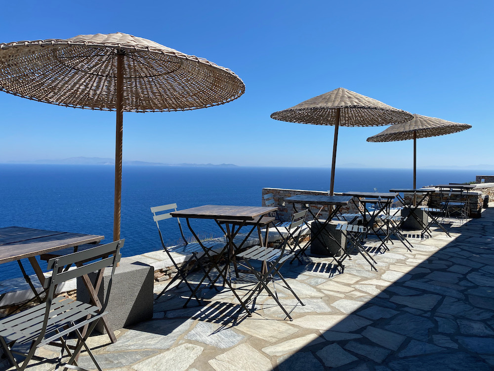 I don’t remember how we decided on the two islands we visited—Sifnos and Antiparos—other than the goal was less-touristy islands that were still easy to get to. First, we took a ferry to Sifnos, where we stayed at the Verina Astra. It’s small, maybe 20 rooms, with a restaurant and a pool and nothing else—except some of the most amazing views you’ll ever see. We stayed in one of the fancier rooms, which had its own pool, but I don’t think we’d do that again. For one thing, the outdoor area (including the pool) was exposed to the neighboring room, and the pool isn’t heated, so we barely used it.