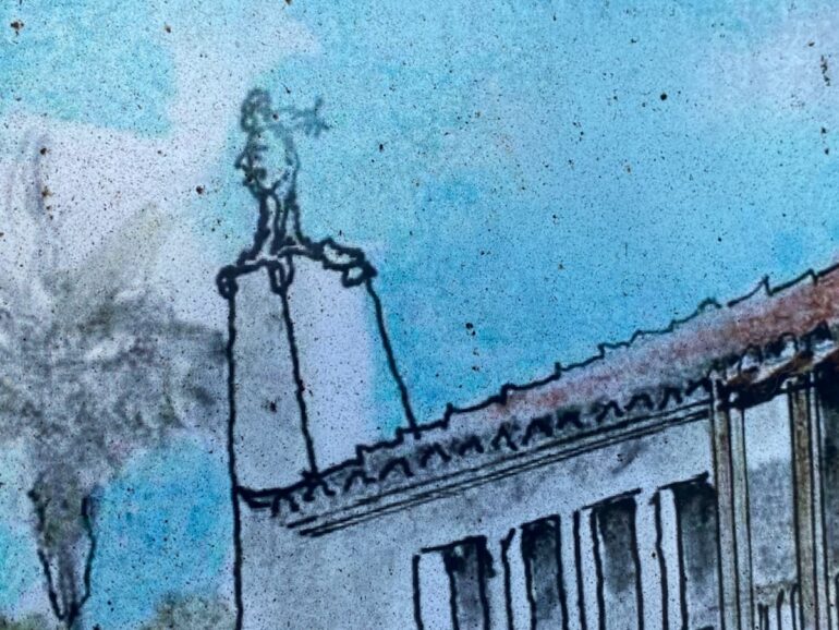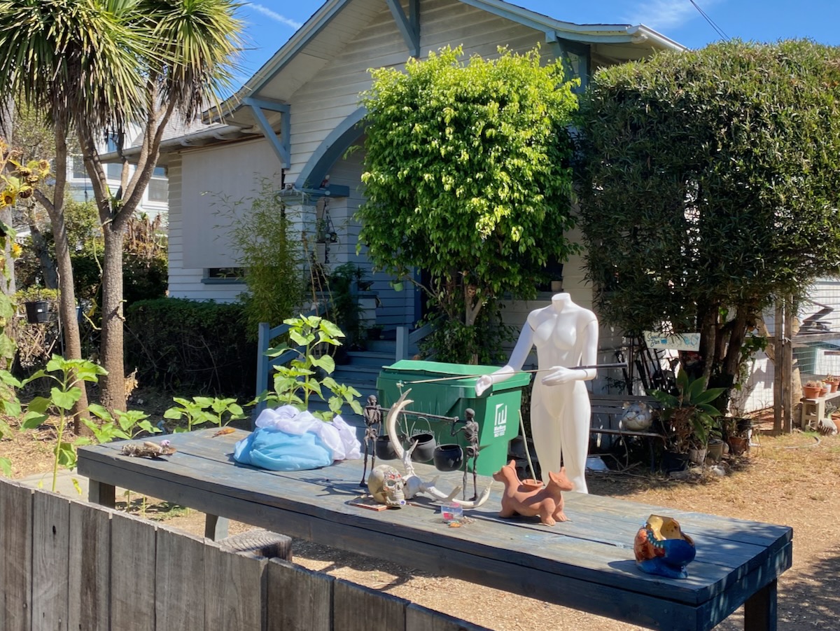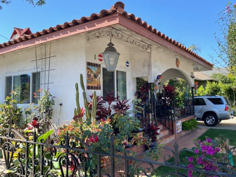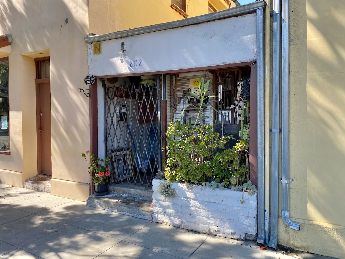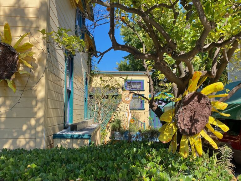 And then there’s 202 W. Canon Perdido, about which someone asked on Reddit five years ago: “Is it haunted? Just some eclectic collecting? The entrance to a speakeasy?” Another commenter answered: “This mysterious ‘cage’ is not a cage at all, the bars were put up because ‘the weenies’ will steal anything that isn’t secured, because life is difficult. The porch at 202 B W Canon Perdido is a living art installation maintained and now curated by the ‘Knights of the Rondo’ but originally created and developed by my fantastic, eccentric, collector artist father Gary Ray Chafe who lived and worked at this studio for the last 25 years of his life. As Santa Barbara becomes more prohibitively expensive the unique character of the alternative style people who lived there changes, and sadly disappears. Gary was a very well known SB person in his day, always lived downtown, and made a humble living off of his prolific, multi medium artwork for more than 60 years, being very prolific in monotype prints, oil paintings and sculpture. If you are truly interested please go to garychafe.com.