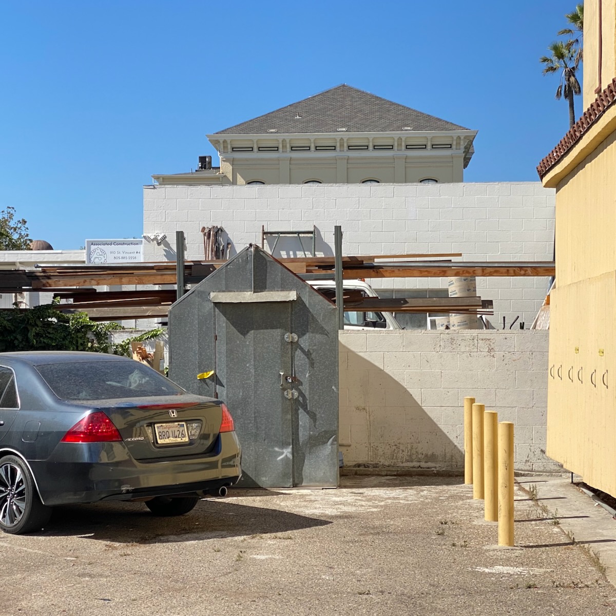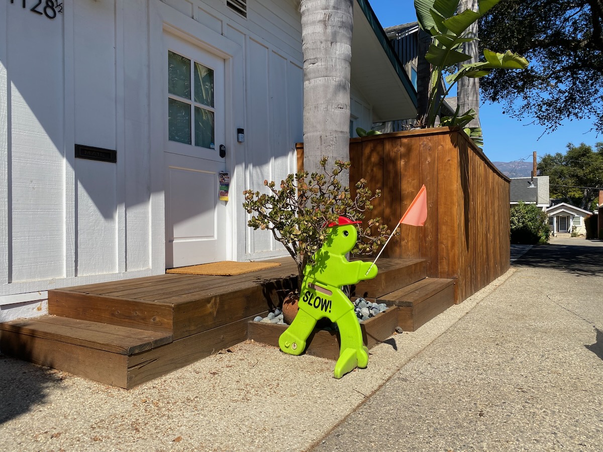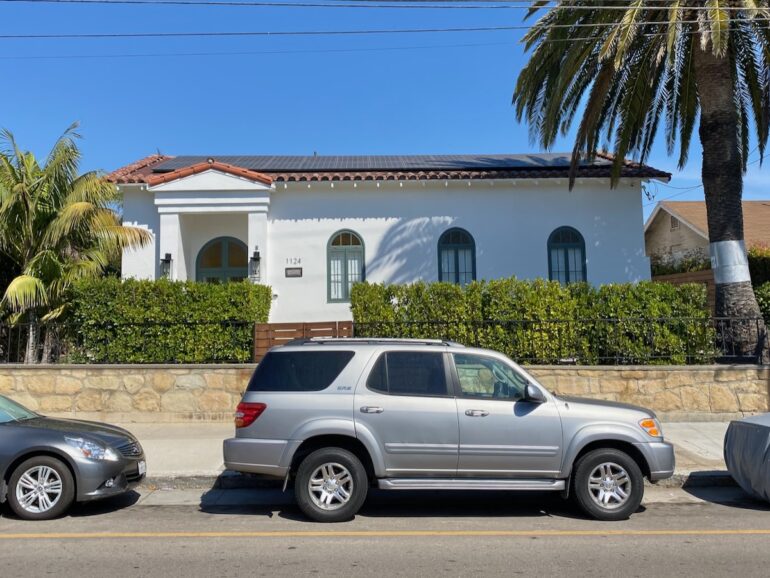 933 Castillo Street was built in 2000, about forty years later than I would’ve guessed. According to a notice posted outside, it’s getting converted into six short-term rentals—precisely what this city doesn’t need more of. Any guesses what the red metal doohickey is for? It reminds me of something on “Liar’s Club” back in the day.