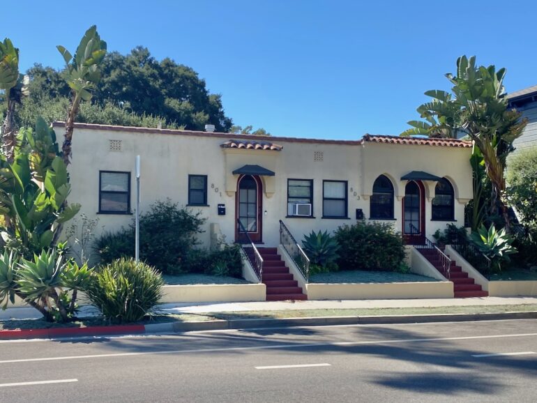 Placido Avenue is also home to this nice three-bedroom house. And it runs into the vacant lot at 312-316 W. Carrillo Street. According to the listing, “Sellers also own 10-unit apartment at 318 W. Carrillo St., and are open to including it in this offering (but will not sell it alone at this time).” The price is “best offer.”