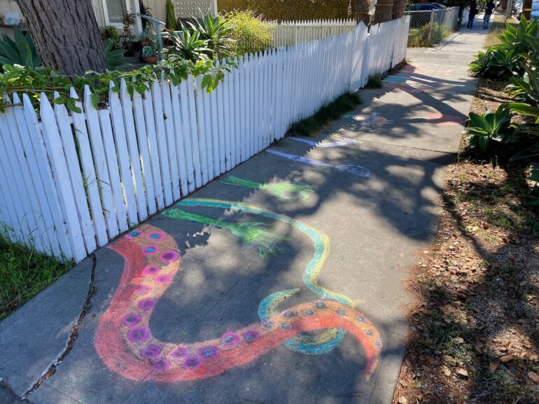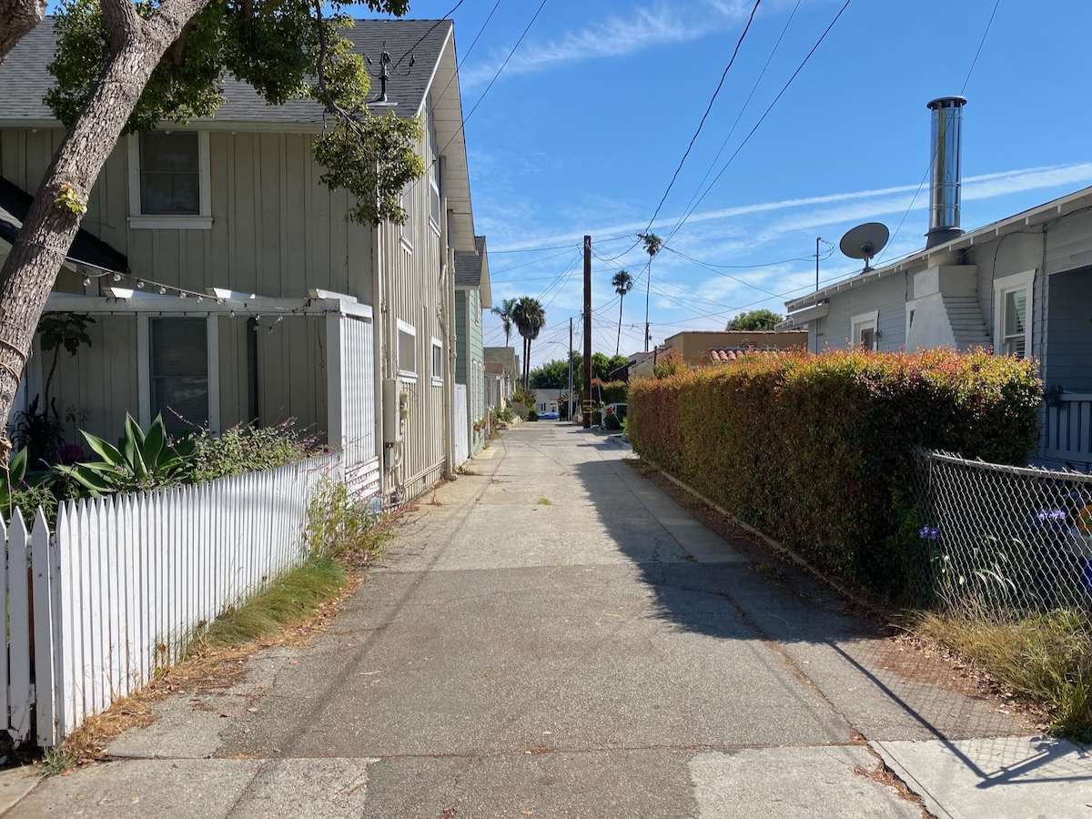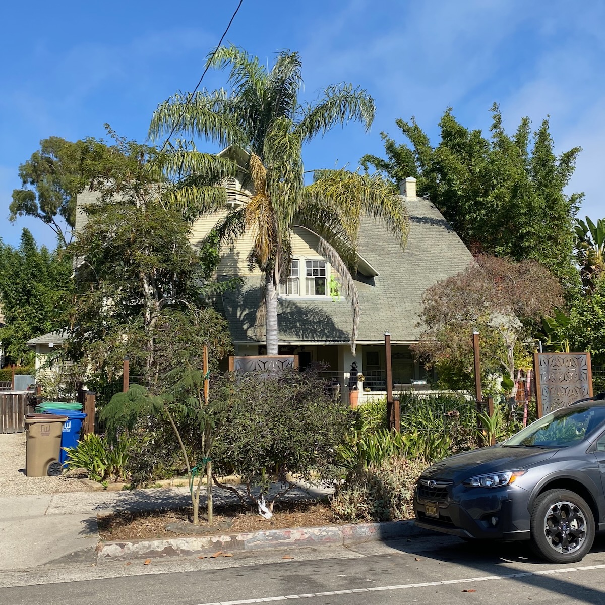 The two blocks bordered by Carrillo/Anapamu and Bath/Castillo are very porous; the interior streets feel more like alleys, regardless of whether they’re named. Here’s what Curley Avenue and its offshoots look like. (Alas, Neal Graffy’s Street Names of Santa Barbara—a lovely gift I recently received—doesn’t explain the etymology of Curley Avenue.)