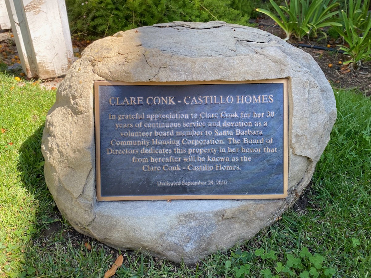 And the 32-unit Santa Barbara Community Housing Corporation complex at 1018-1028 Castillo Street is also quite attractive. Noozhawk covered the 2010 dedication of the property to Clare Conk, who did a lot of good. But the plaque’s promise that the property “from hereafter will be known as the Clare Conk – Castillo Homes” didn’t hold up; signage nearby and the SBHBC website refer to it simply as Castillo Homes.