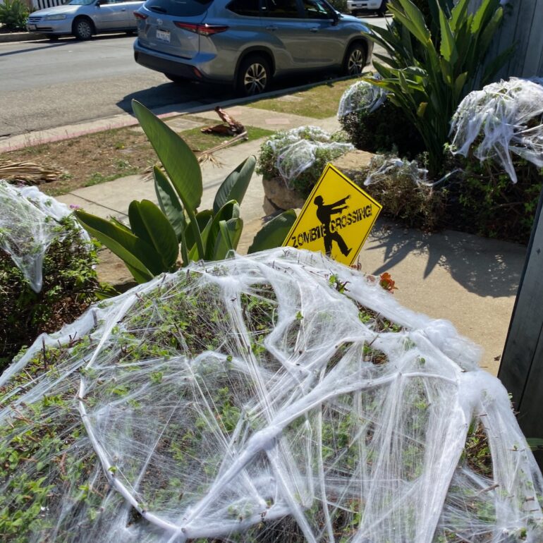 And that’s it for buildings. I did this walk in October, when Halloween decorations were going up. As I mention every fall, sometimes twice, spider webbing is best avoided, because birds and insects get caught in it and die.
