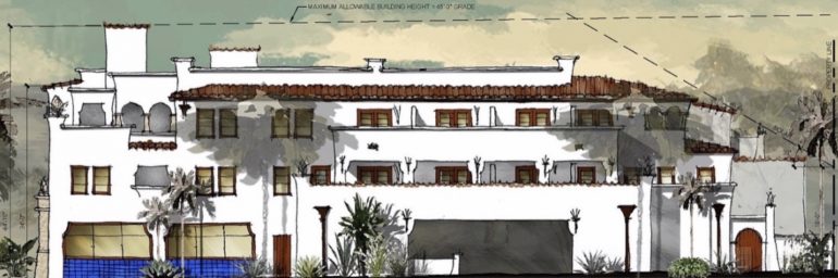 ••• Developer Ed St. George’s 32-room hotel project at 302 and 308 W. Montecito St. “will return to the City Council on Tuesday with a new design [below]—and a plan for off-site housing. […] The new project is now designed in Santa Barbara Spanish-style architecture, has greater setbacks around the half-acre property, and the entire building has gotten smaller. The third floor has been reduced in mass by 25 percent.” —Noozhawk