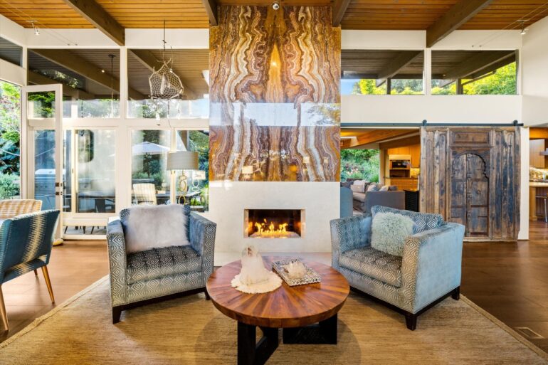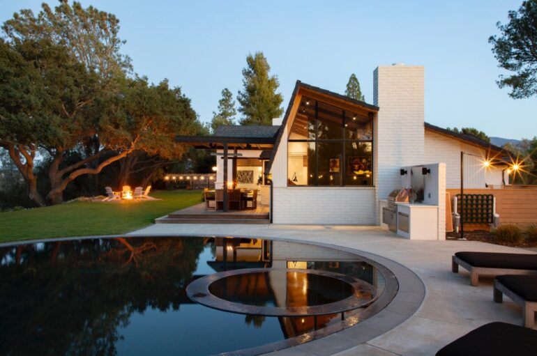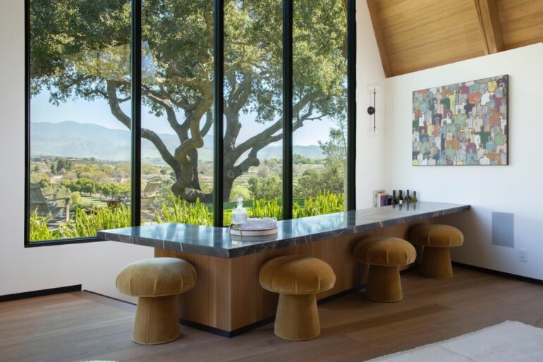 And then there’s 655 Oak Springs Lane ($9.995 million), where the midcentury-style architecture has been given an overlay that’s a little rustic, a little industrial, and a little glam. (And a little Madonna Inn, in the case of the primary shower.) I missed the chance to see it this week, so I don’t know whether the pool cabana could serve as a guest house, which would be welcome, as the main house has only three bedrooms. (Yes, “only”—for $10 million, you might hope for more.) Even if the 1990s style isn’t your jam, the resort feel of the 1.35-acre lot, on a private lane east of Lotusland, definitely has an appeal.