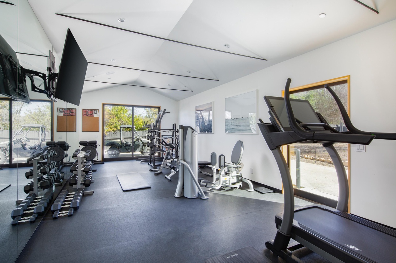 The 1965 home at 5399 Baseline Avenue ($10 million), a 6.33-acre property east of Santa Ynez, is a geometer’s delight, and the wild angles are set off with refreshing minimalism. Bonus points for the sunken bar, circular pool, and roomy gym. P.S. I feel obliged to point out that if you buy a Wolf range, you can opt for knobs that aren’t red.