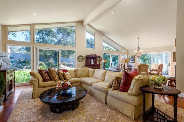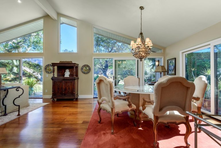 2084 East Valley Road ($8.5 million) sold for $6.9 million last May; the owner has given the interiors a contemporary gloss. The selling point here is size—6,027 square feet, six bedrooms, a guest house, two hot tubs, a freestanding studio, and more—while the main demerit is the East Valley Road location. Note: Already in escrow.