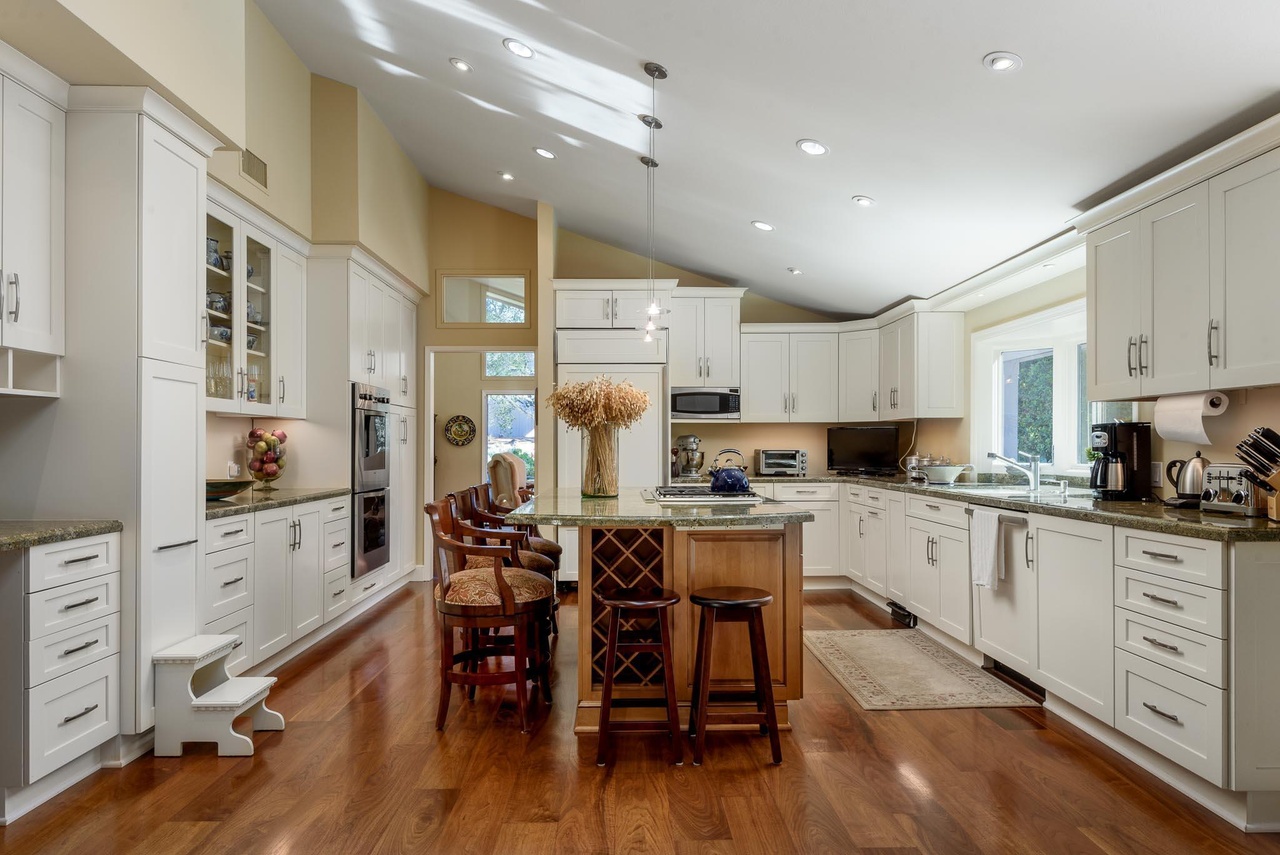 The three-bedroom 1475 Bonnymede Drive ($8.75 million) would seem to be priced as if it were freestanding, and not conjoined with another property, but in this market, who knows? And I’d personally want to update many of the surfaces. Note: The $3,000 monthly HOA fee includes landscaping maintenance and regular exterior painting.