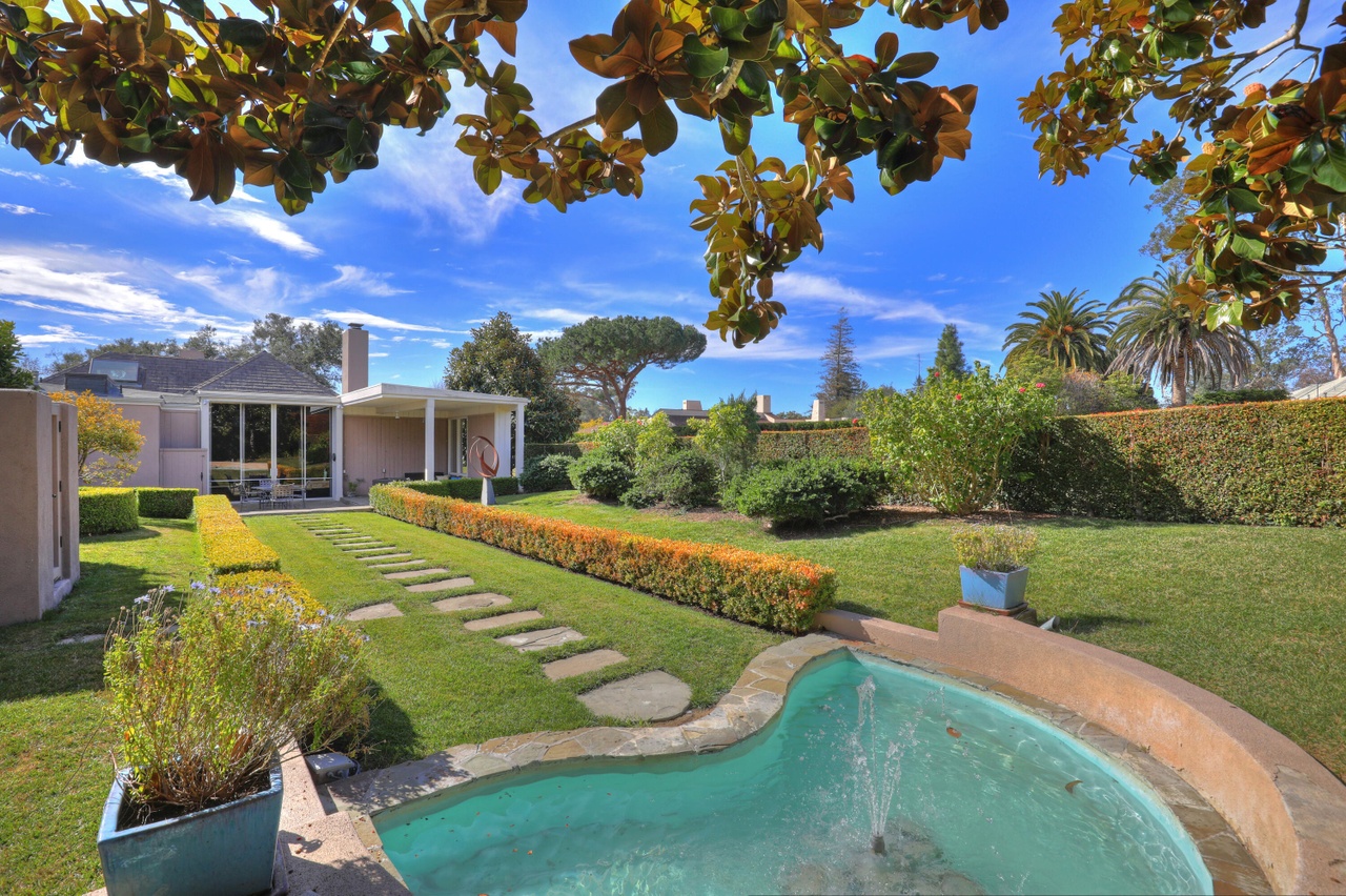 Built in 1968, 2062 China Flat Road ($6.15 million) is another kooky Jack Warner floor plan—just think of the steps you can get in schlepping between the living room and the master bedroom. (To be fair, the long, skinny lot must have posed challenges.) It’s a total redo waiting to happen. The listing agents say that the owner will review offers February 9. P.S. I think that’s a fountain and not a hot tub…? It has a rather ceremonial approach.