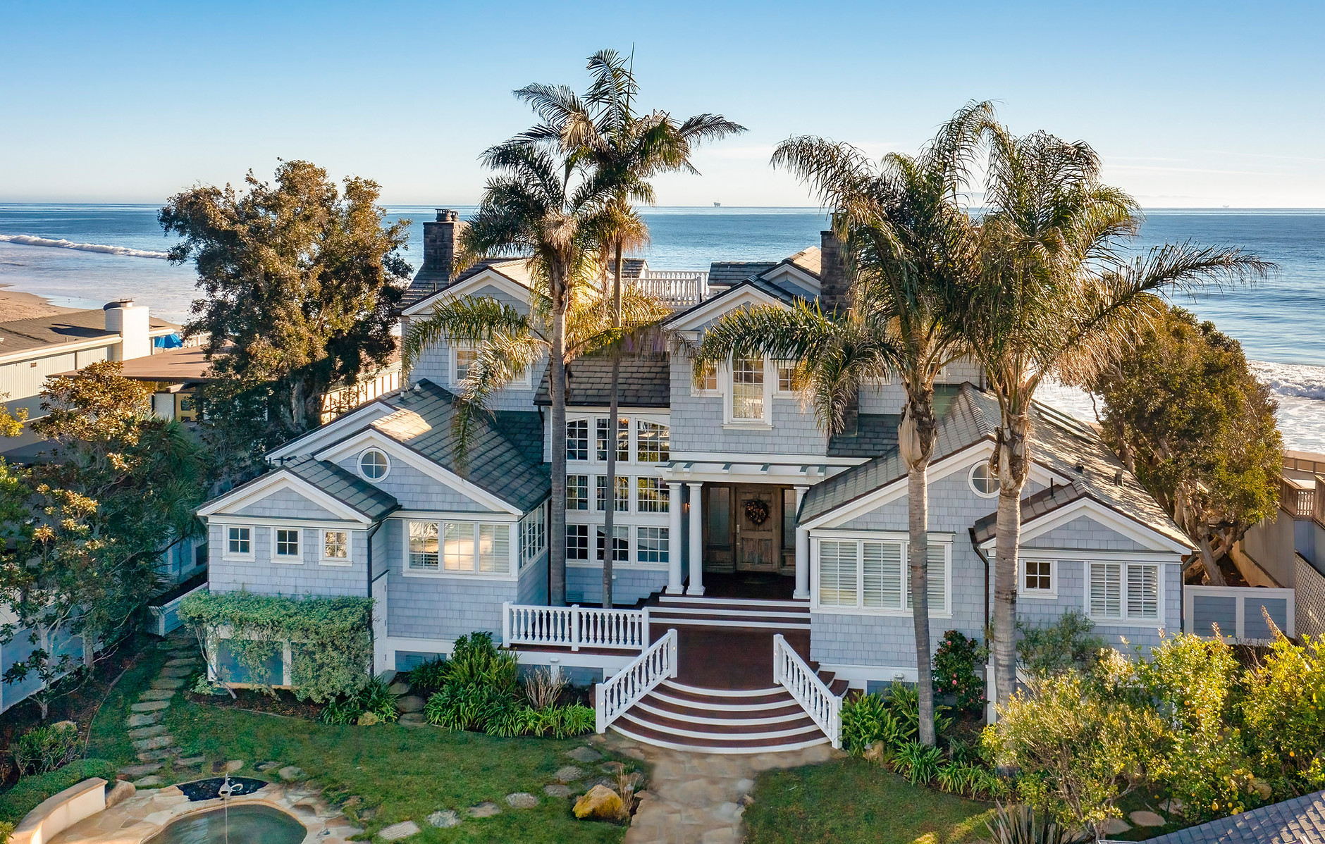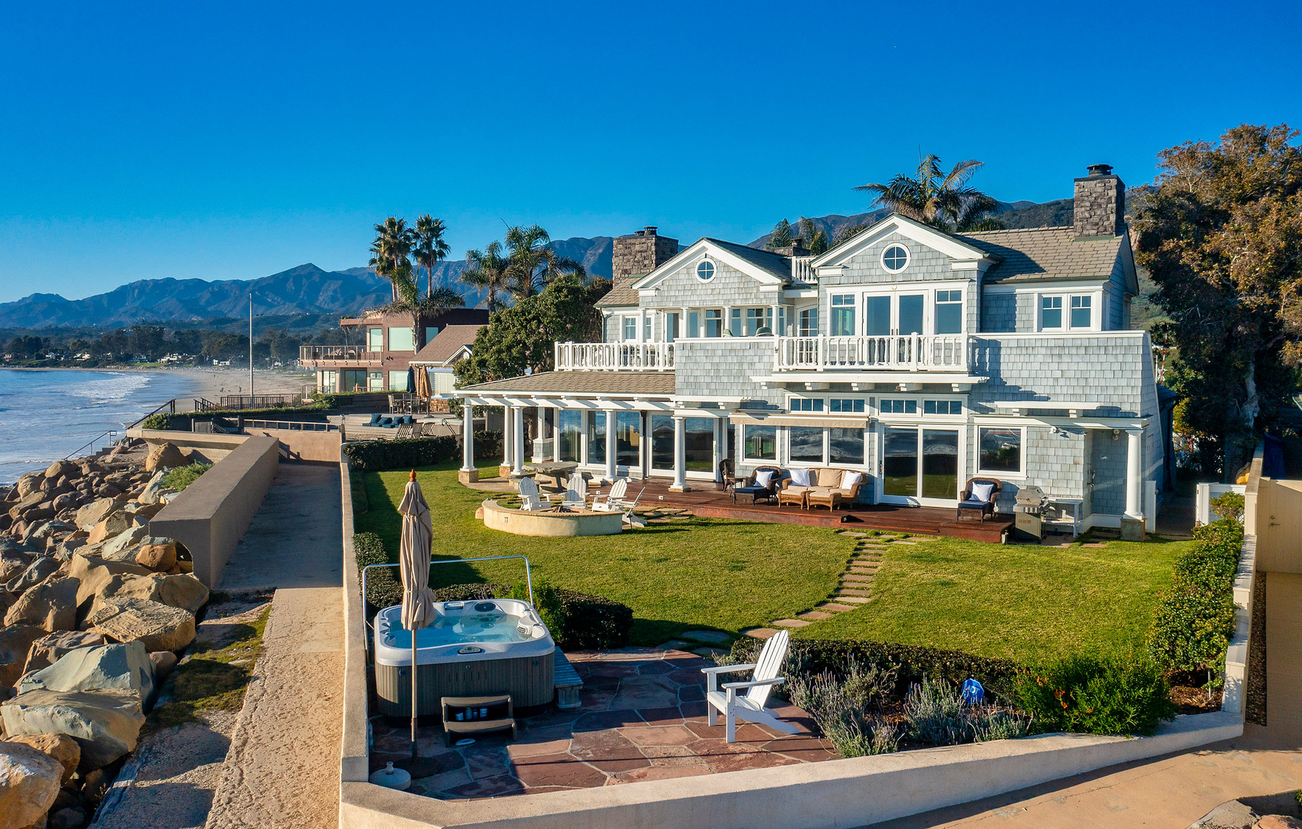 I don’t usually include pocket listings, but 3599 Padaro Lane ($29.5 million) is both very prominent (at the eastern end of the street, near Santa Claus Lane) and priced to be noticed. Built in 2007, the oceanfront property has five bedrooms and five-and-a-half bathrooms.