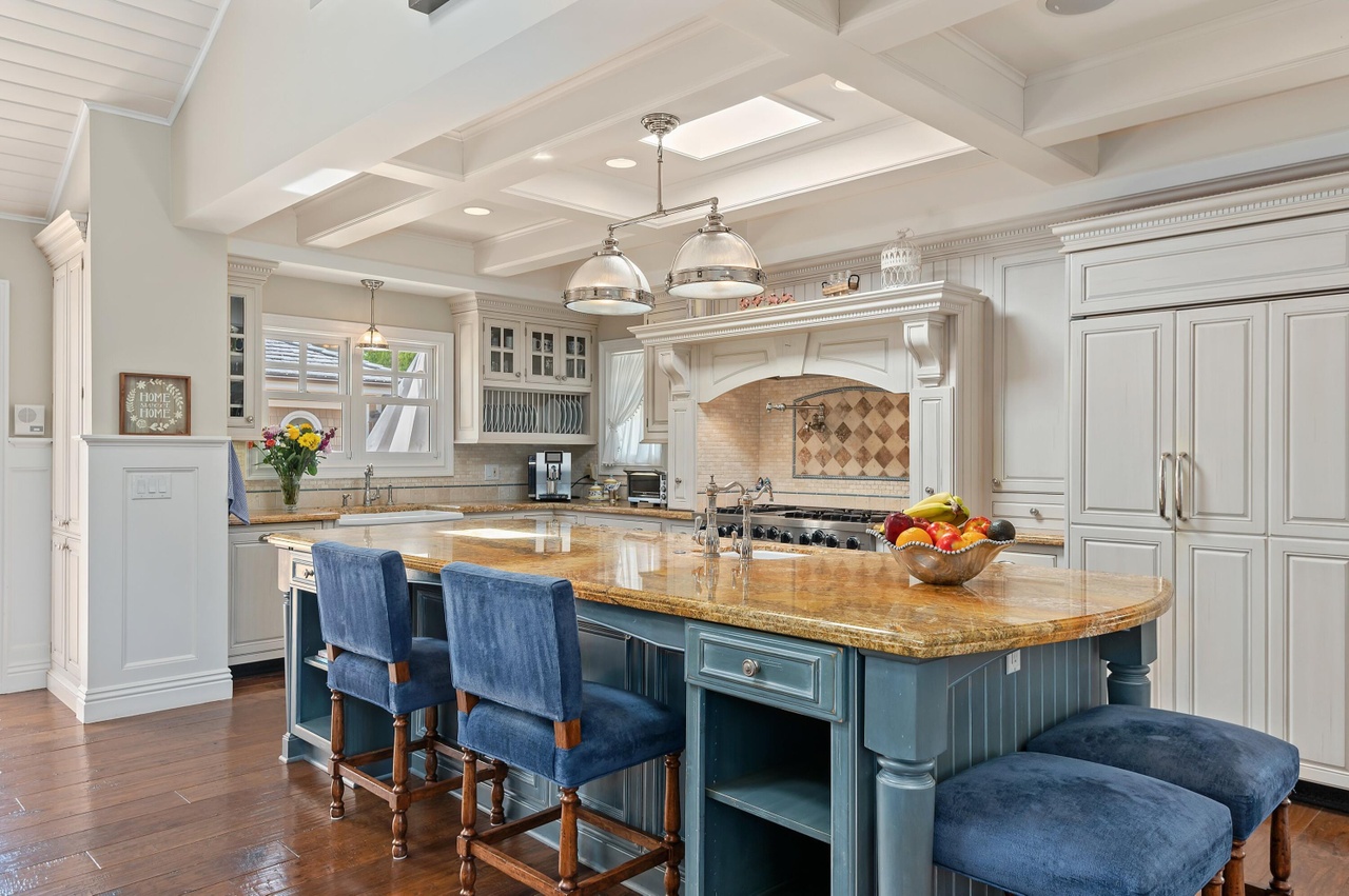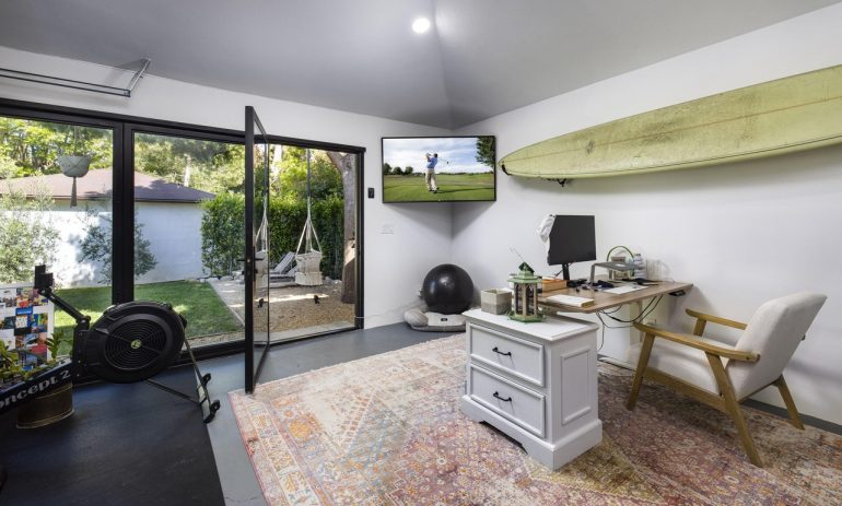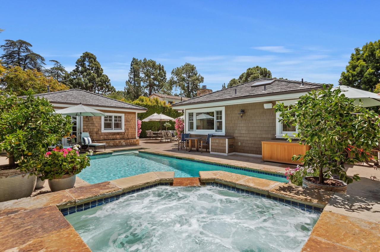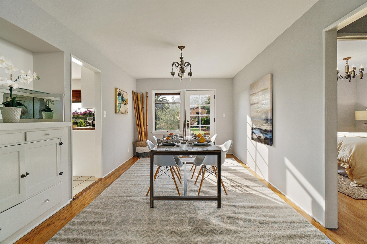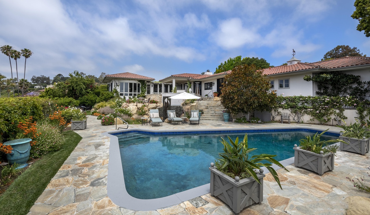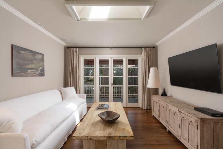 2901 Puesta Del Sol ($2.35 million) is a 1948 cottage in San Roque that’s been stylishly redone with many large glass doors. What you can’t quite tell from the photos is that the entrance is on the side of the house; that terrace off the living room and dining area is actually the front yard, with the sidewalk on the other side of the hedge. The garage has been converted into an office/gym, but you could change it back.