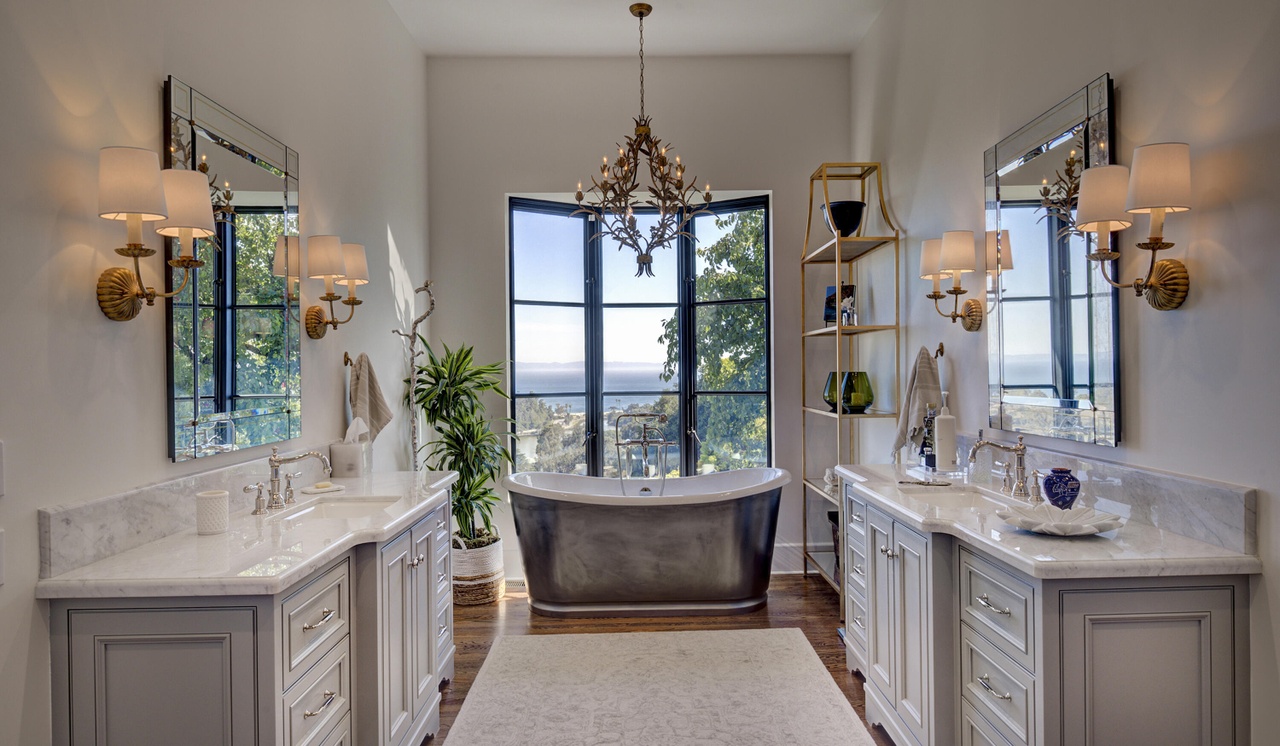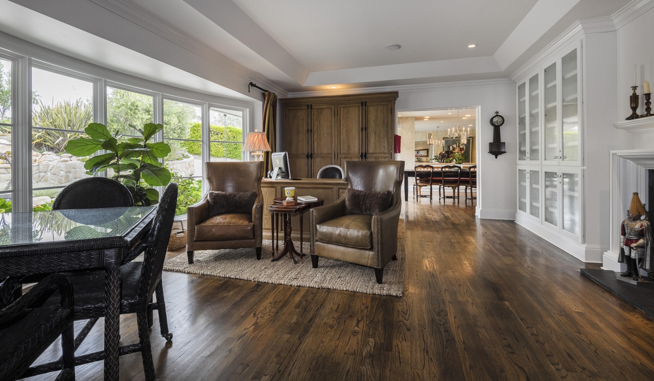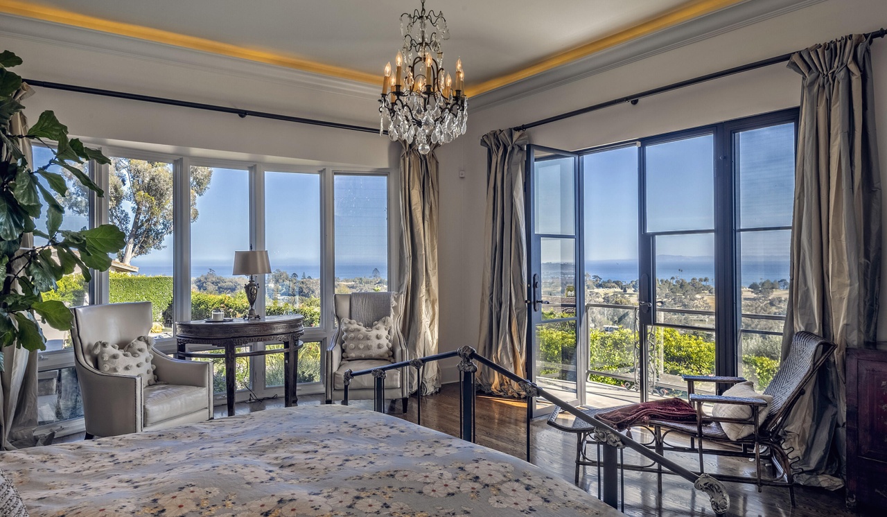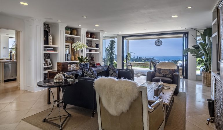 On what I (alone) call the golden slope of Eucalyptus Hill, 129 Rametto Road ($9.975 million) has superb views. The house doesn’t quite live up to the grandeur of the setting—it reminded me of a Coronada Circle property—but the floor plan works. Down at pool level, an intricate water feature helps drown out the inevitable freeway buzz, and there’s a cozy guest room off to the side.