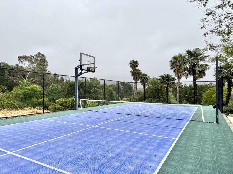 Floops of a 1990 Mediterranean on two acres with pool and sport court; the seller paid $4.325 million in March 2024.