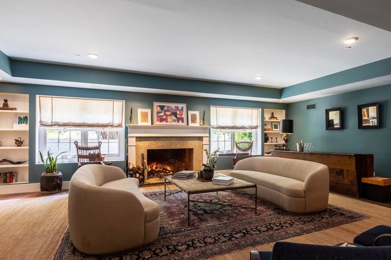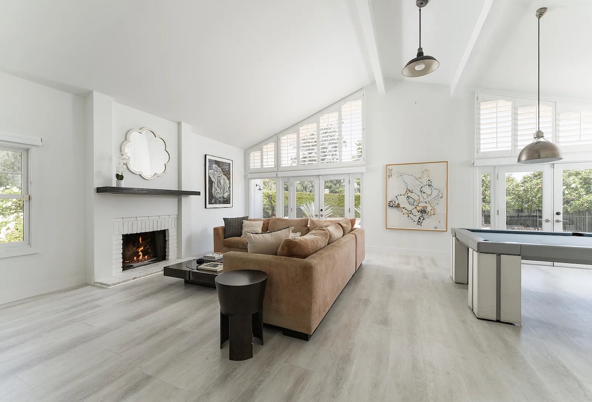 While the black facade of 925 El Rancho Road ($4.5 million) reads a bit heavy—even the chimney got painted—inside has charm, showing what can be done with 1970s architecture. The house is not huge; living room, dining area, and kitchen all share one space. But the four bedrooms are en suite, and anyone who starts to feel cramped can hang out in the treehouse. Bordering Hale Park is a big plus; the vacant lot next door is more of a question mark.