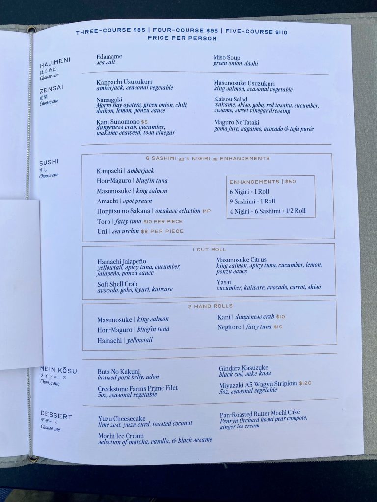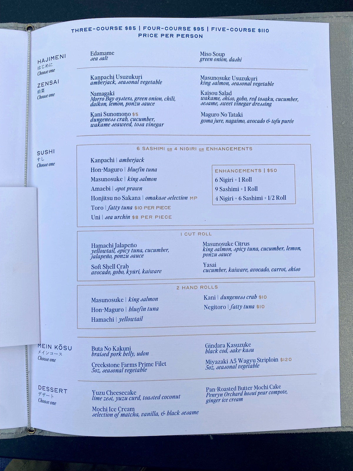 AMA’s prix fixe menu is so confusing and with so many different permutations possible, it makes no sense. Plus you can also still order off the menu at the end. Either make it a fixed menu, or allow a la carte.