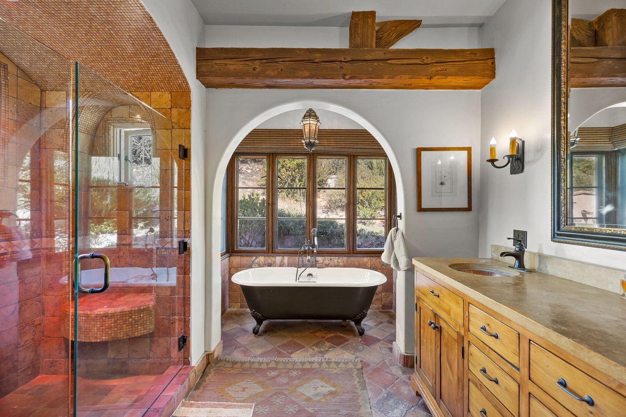 Across the street is 4680 Via Roblada ($11.25 million), which has a bigger lot (2.33 acres), a guest house, and a tennis court. But the interiors are crying for an update.