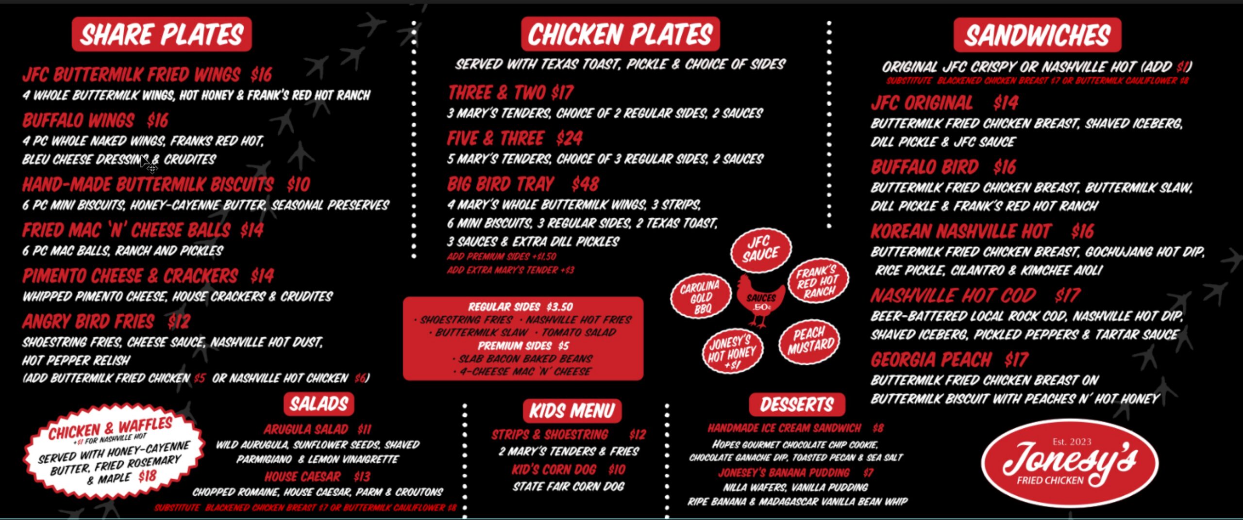 Funny, I ate at Jonesy’s and the only good thing was the fries. Chicken pieces instead of nuggets would be much better. Cole slaw was dry and flavorless. This was shortly after they opened so I will give them another try.