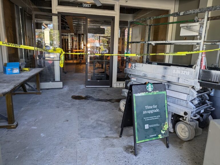 ••• The Starbucks at Five Points Center is undergoing a pretty thorough revamp. (Thanks to J. for the photo.) I made a rare appearance at a Starbucks a couple of weeks ago while visiting my parents, and I got increasingly frustrated as the staff filled a bunch of mobile orders—from patrons who hadn’t arrived yet—ahead of mine. (This can happen at independent cafés, too, of course.) It makes me feel the way I do whenever a staffer answers the phone instead of helping people who have been waiting in line.