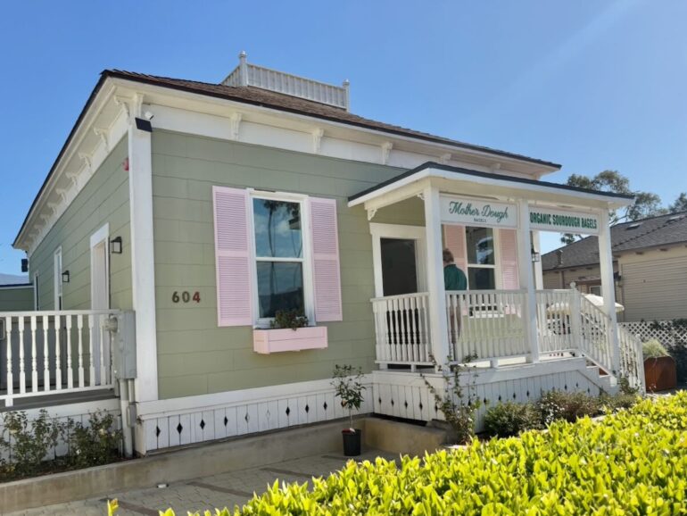 ••• I finally made it inside Mother Dough Bagels—on previous attempts, I was stymied by the line out the door. The restaurant was packed, which meant (a) I couldn’t easily take photos of the adorable space, and (b) I ate my bagel while sitting on a wall nearby. (There are picnic tables on the south side, but every toddler and baby in town was there during my visit.) The operation seems to be running very smoothly, and I kept thinking how this is the kind of stylish little food business I wish Santa Barbara had more of. My only note on the satisfying gravlax bagel is that I’d prefer the capers embedded into the cream cheese, because one bite and they roll right off the salmon.