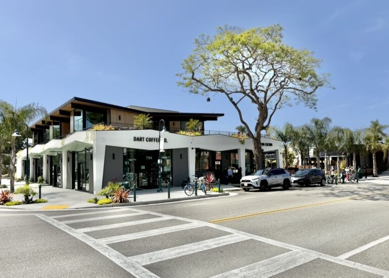 For all its small-town charm, Carpinteria has lacked a center, but no longer: Linden Square is open, and as I mentioned the other day, it feels great—both from the street, where it has curb appeal unmatched by anywhere else in downtown Carpinteria, and on the premises. DMHA worked on the shell, while Kevin Moore Architect and AB Design Studio handled the interiors, and Jodi G designed the public spaces.