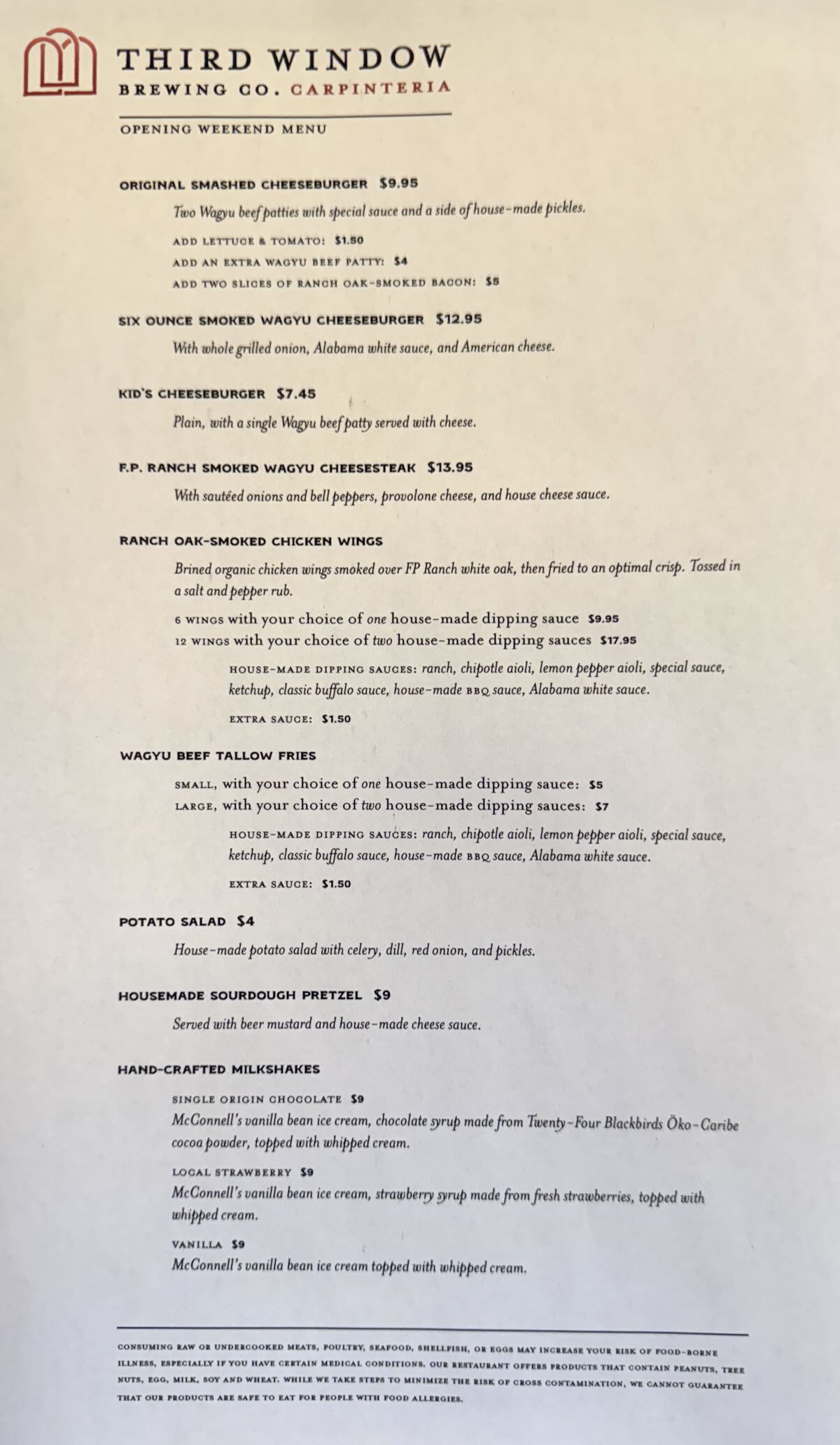 Linden Square has assembled a murderer’s row of Santa Barbara establishments—Third Window Brewing Co., Tina’s (from Bettina), Corazón Cocina, and Dart Coffee Co.—which is a little more exciting for Carpinterians than Santa Barbarans who might wonder why should make the trip. Third Window has the primest position, in an airy space on Linden Avenue with garage door–style windows.