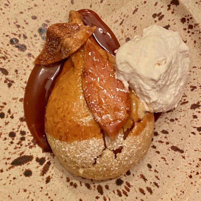 ••• Speaking of sweet things, I needed a dessert for a dinner party and I wanted something new, so I asked Sandra Adu Zelli of Gipsy Hill Bakery if she’d make something seasonal and delicious. Voilà, poached pears and frangipane in pastry, with salted caramel sauce and whipped cream. They were obviously beautiful—for some reason, I took a photo of the lone cracked one—and a big hit. The moral: don’t be afraid to ask our many home bakers for custom ideas.