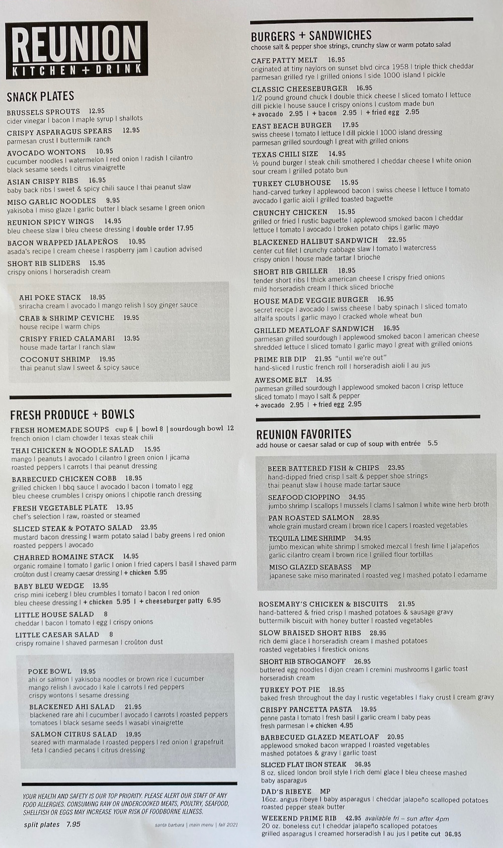 ••• Reunion Kitchen + Drink has opened in East Beach’s Cabrillo Pavilion. For now, the hours are 3-9 p.m. Here’s the menu, which you can’t say is small:
