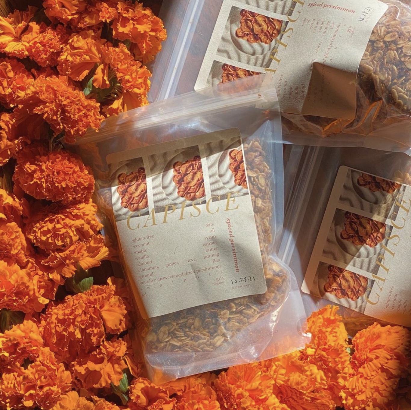 ••• Fans of Capisce Market will want to know that it’s having a pop-up this Saturday with Clevr—a rare chance to browse the goods and meet founder Serafina LoGiacco rather than order online. Right: spiced persimmon granola.