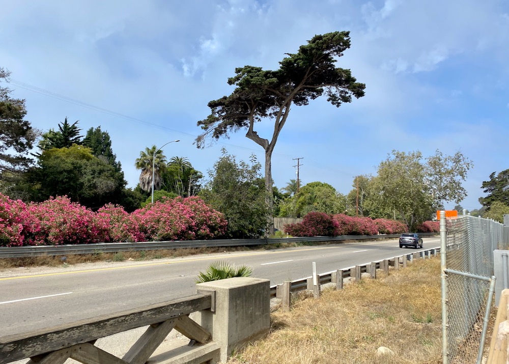 ••• Way back when, after I wrote about how the wonderful old cypress tree in the Highway 101 median south of the Miramar resort would be cut down as part of the freeway widening, someone told me that her family always called it the Welcome Tree, because when you saw it, you knew you were in Montecito. Ever since, I’ve thought of it that way. And now it’s gone.