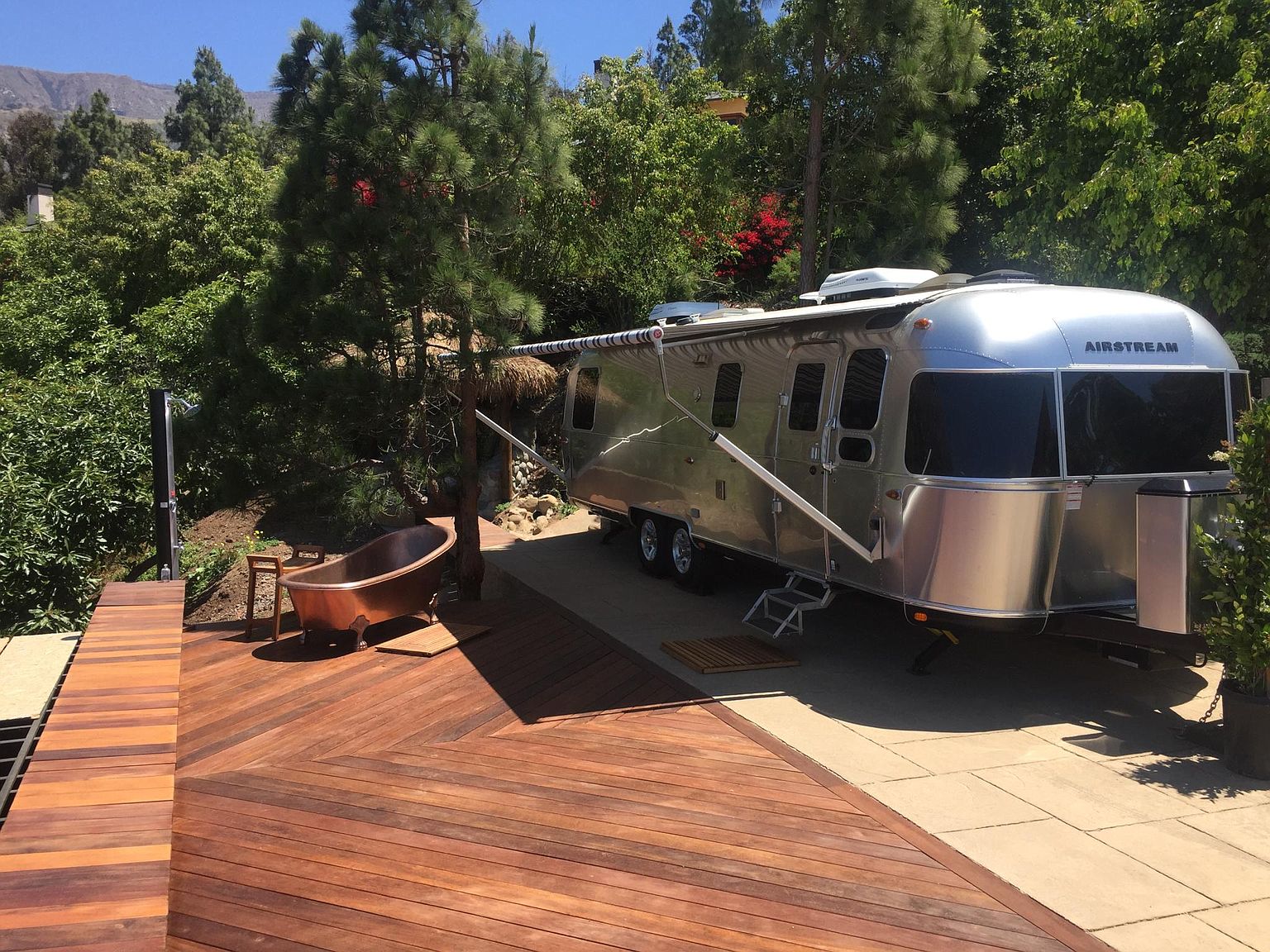 ••• Meanwhile, a “mega size estate” on Bella Vista Drive in Montecito is asking $28,750 per month, with flexible dates. It’s not often you see a helicopter and an Airstream at the same property (and I’d be wary of landing a helicopter there, in light of recent opposition to a private helistop further east). Also, in the photo of the tub, is that water coming from the ceiling?
