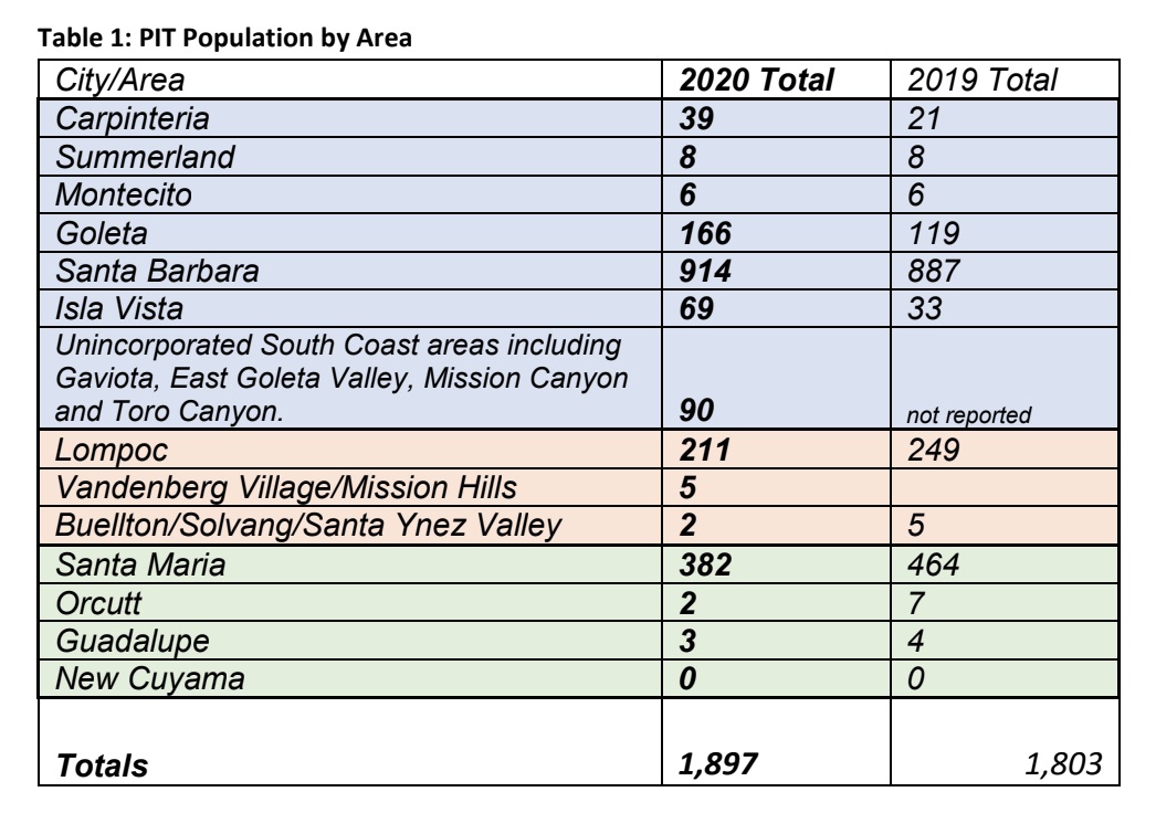 ••• A press release from the county: “Results of the 2020 Point in Time Count of persons experiencing homelessness was released today. Countywide, 1,897 persons were counted representing an increase of 5 percent in the number of persons experiencing homelessness.”