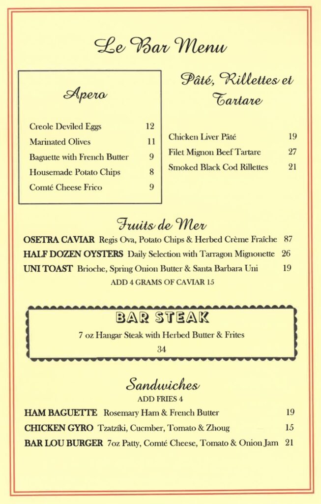 ••• Bar Lou has added a bar menu, which includes hanger steak frites for $34. And the patio got a nice upgrade.