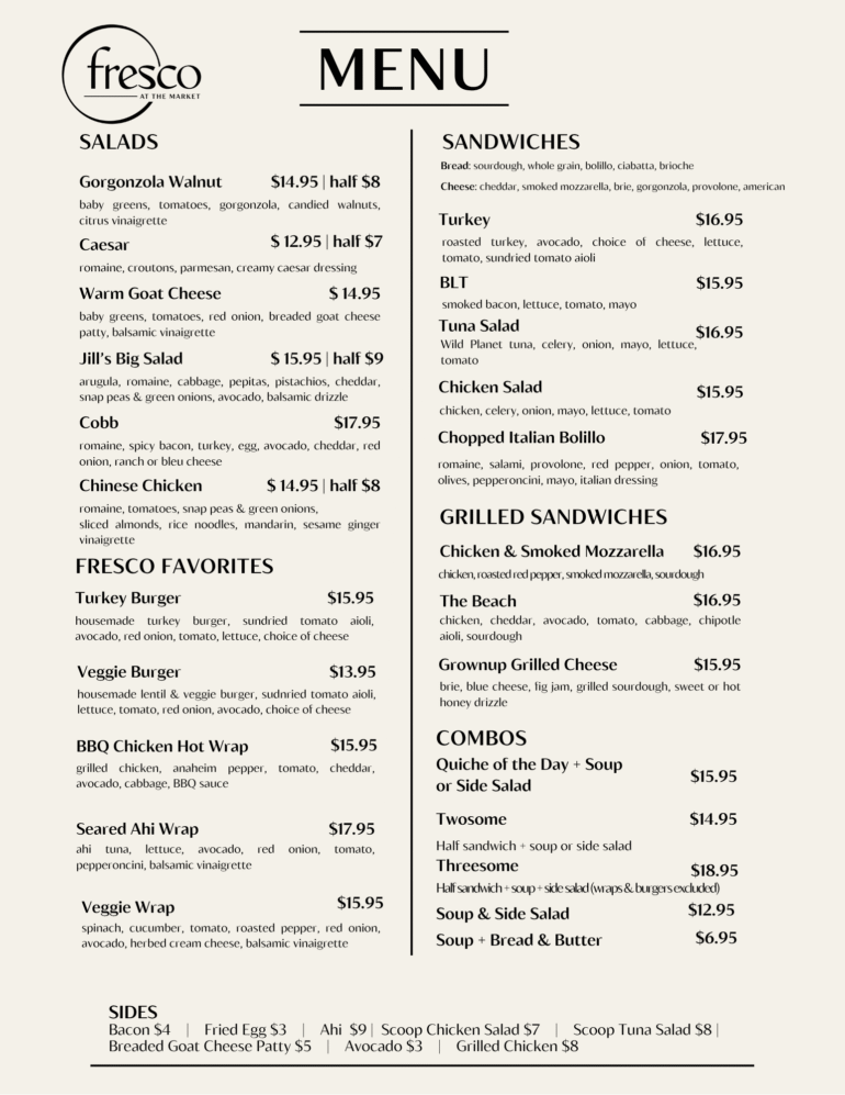 ••• In more Public Market news, Fresco at the Market opens today at 11 a.m. It’s the new iteration of Fresco Café, formerly of E. Canon Perdido and Five Points Shopping Center. The opening menu: