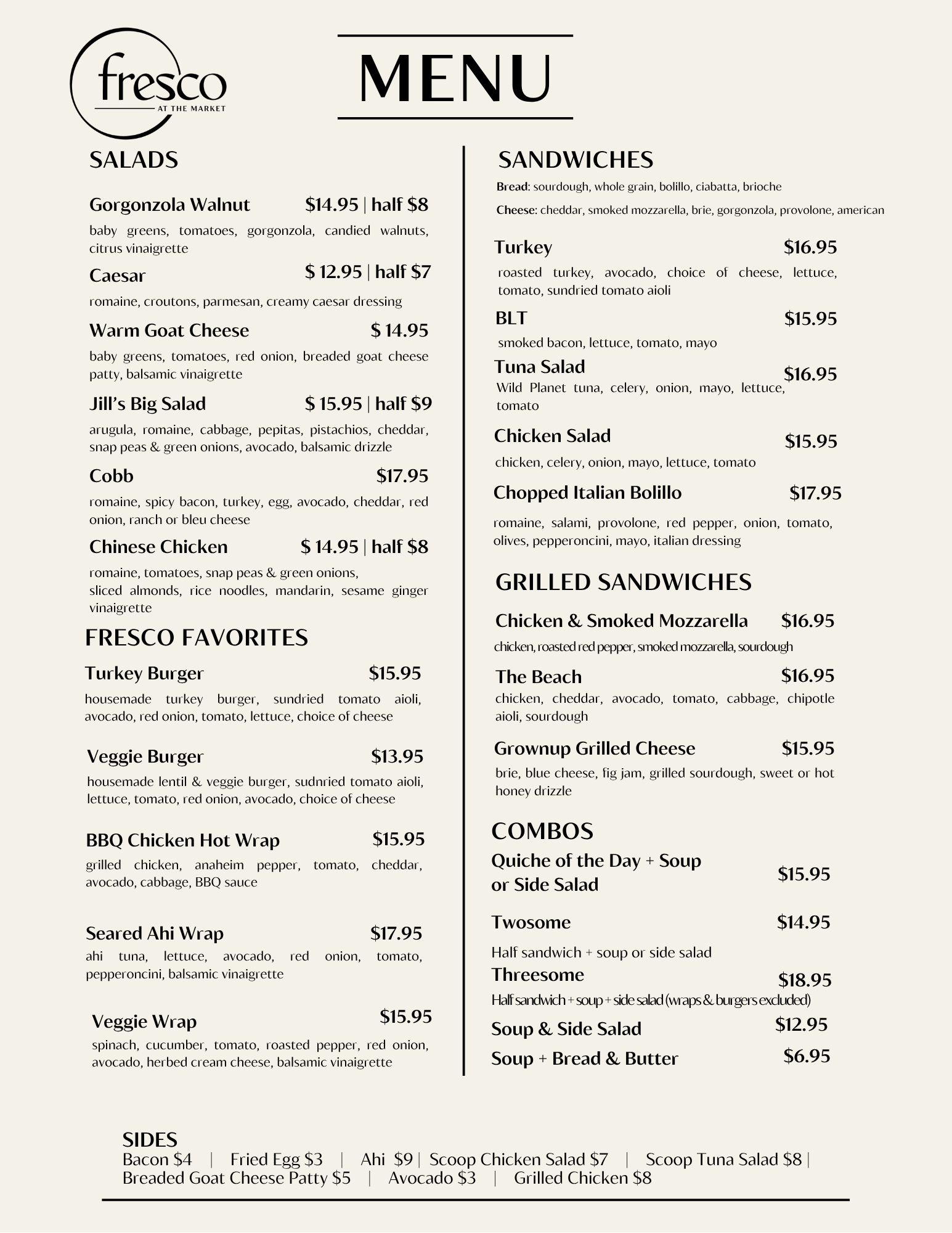 Fresco at the Public Market is a most welcome addition. I miss the original location and menu. Break a leg!