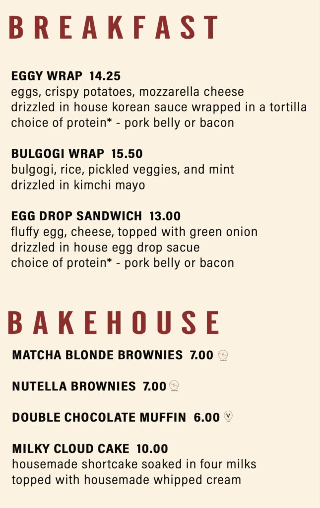 ••• And also at the Market, Seoulmate Kitchen is shooting to debut the second week of July. Here’s the menu for the cafe counter: