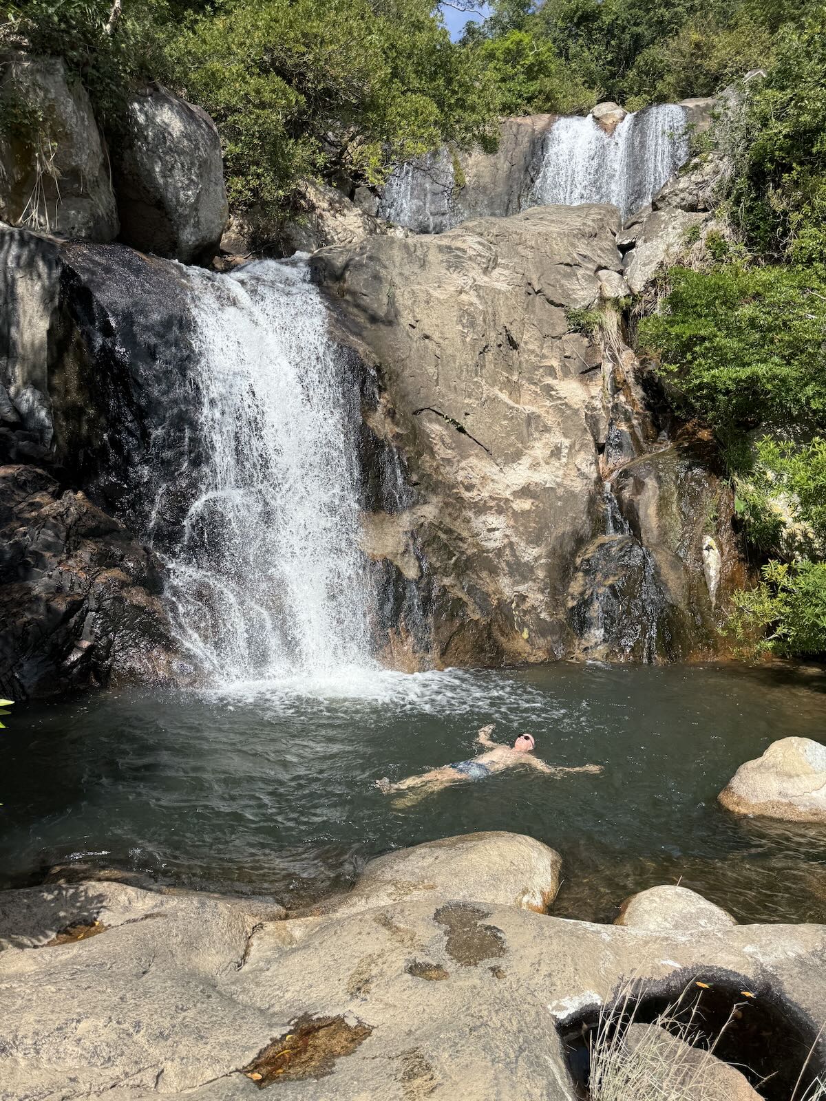 Our lone activities were a visit to the spa and the Ba Tang Waterfall Trek. We told the staff in advance that we like to hike quickly, and the guide moved like he was on fire. He and the porters complimented us for being so fast (for our age, natch), but the porters did it even faster and in flip-flops.