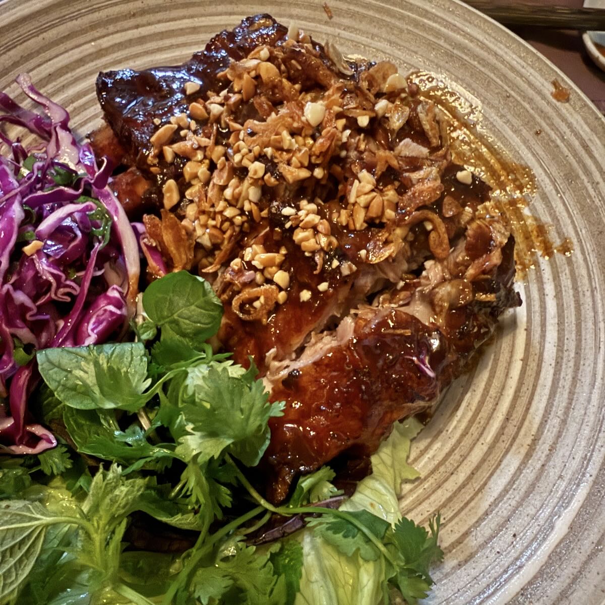 I would more highly recommend Chào Bạn, site of excellent pork ribs and the best spring rolls I’ve ever had.