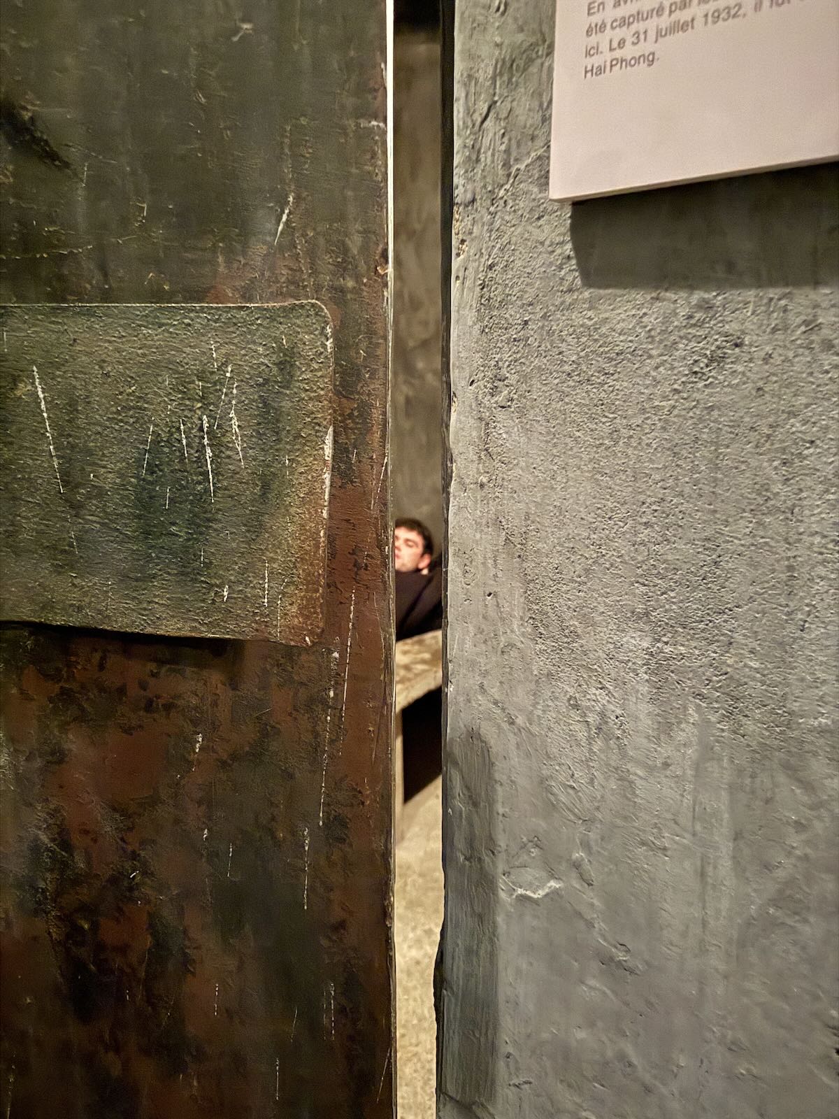 The tour’s nadir occurred at Hoa Lo Prison, where our guide insisted that American prisoners called it the Hanoi Hilton “because it was as comfortable as a hotel.” (He was up there with the Galápagos guide who was unsure about evolution.) The displays hewed to the same story, making much of how viciously Vietnamese prisoners were treated by the French while ignoring how the Vietnamese turned around and did the same thing to Americans. I suppose every country is entitled to frame its history however it pleases, but that doesn’t mean I want to hear it. And, to be honest, I was destined to dislike the experience, for I find it disturbing to see prison and torture treated as a tourist attraction. Below: a visitor trying out a cell.