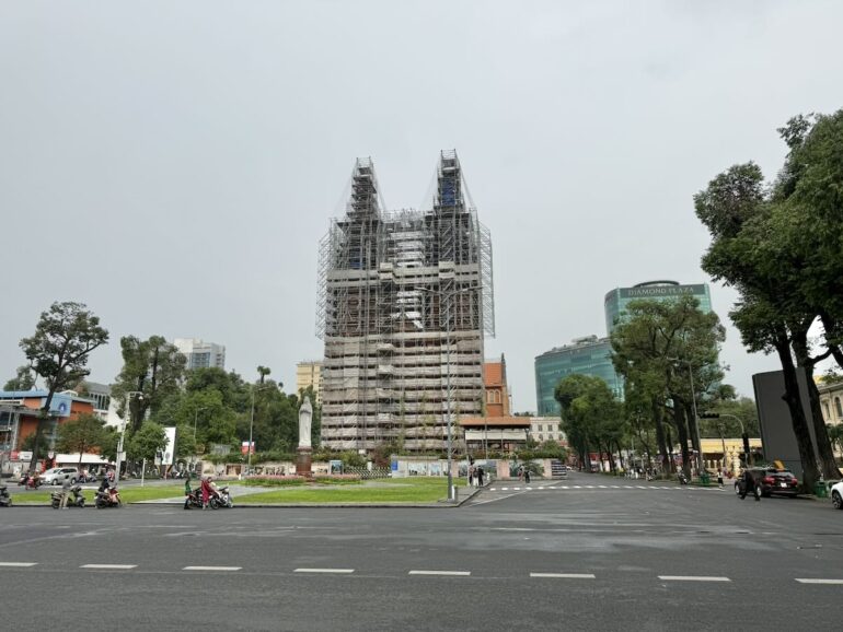 The sultry weather limited our exploring, but we did hit quintessential sites like Book Street, the big Ho Chi Minh statue, and the Notre Dame Cathedral, encased in scaffolding.