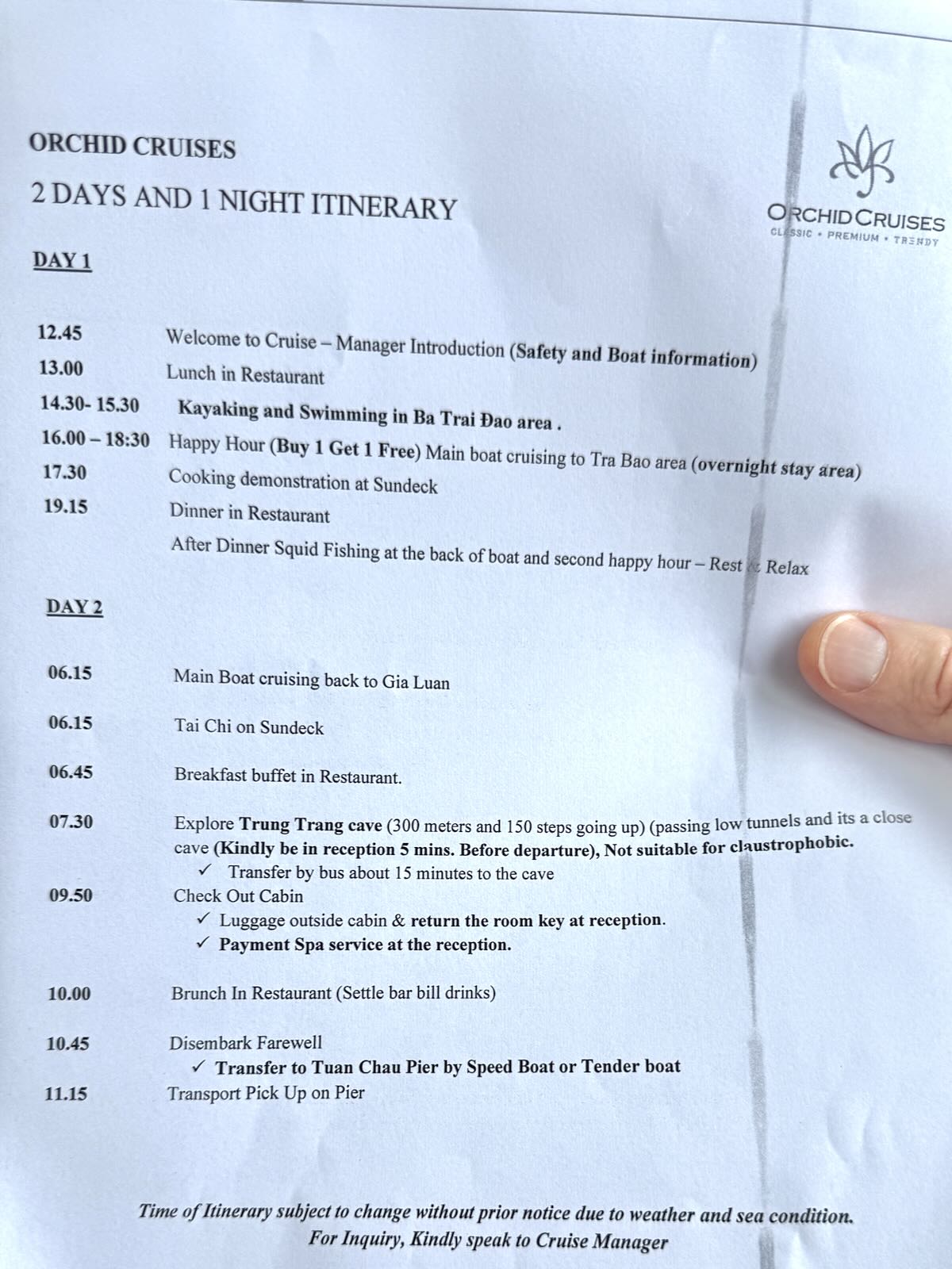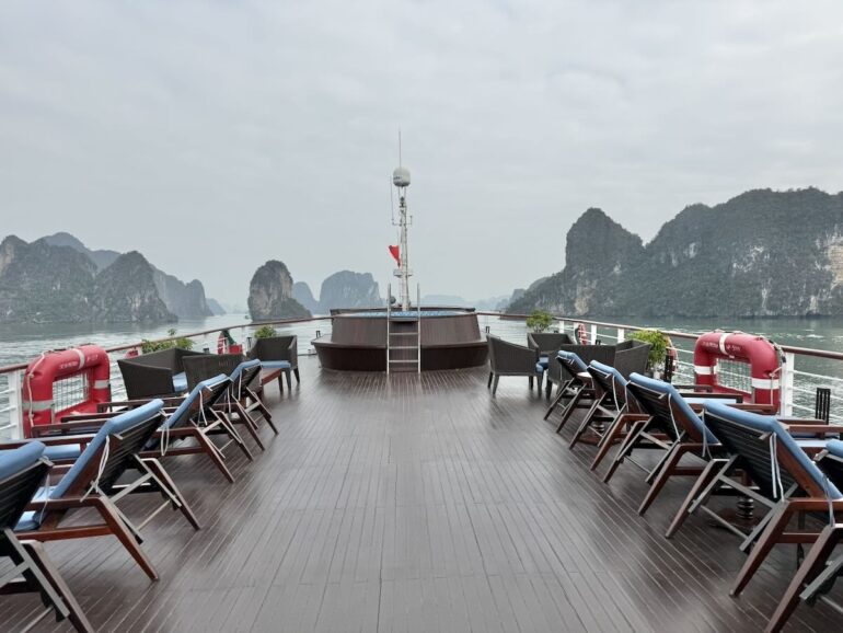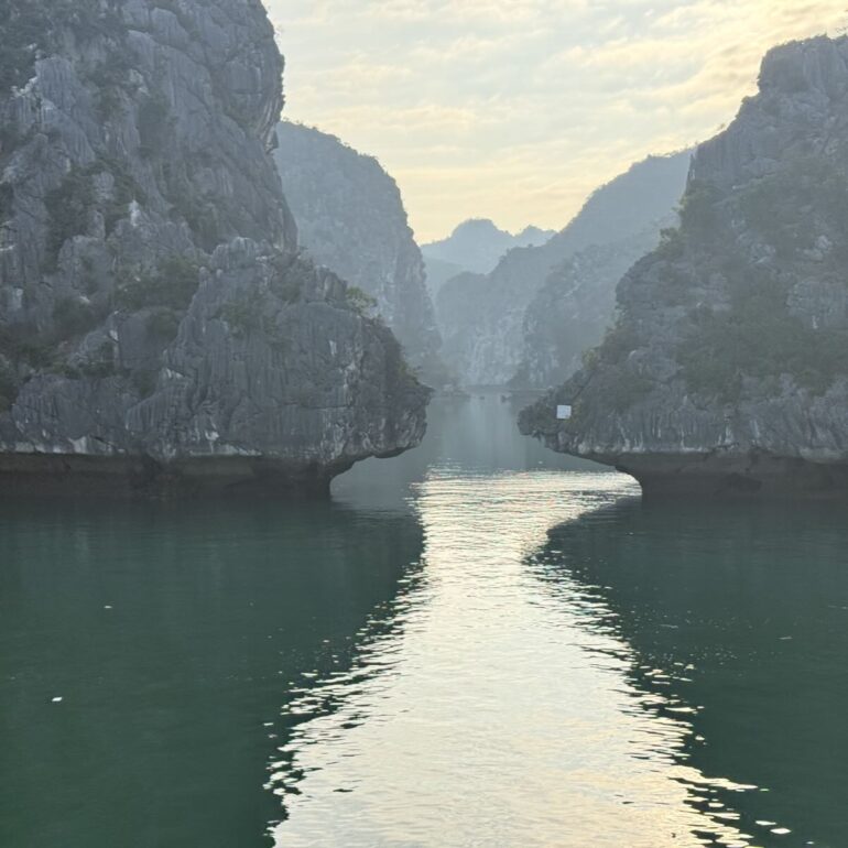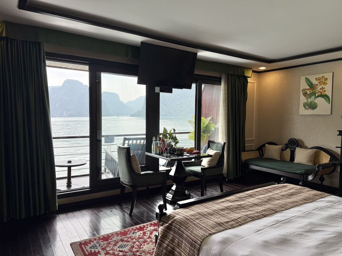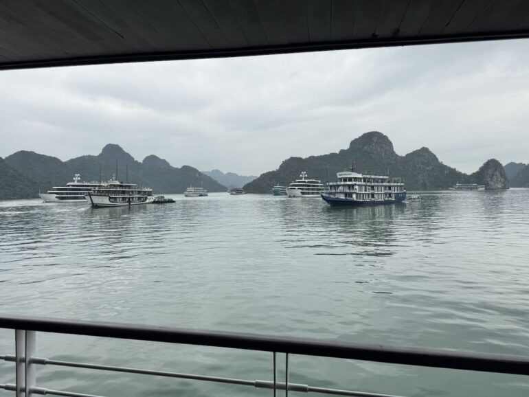 We knew we’d crave nature after Hanoi, and Ha Long Bay appears seductive in photos. By all accounts, however, it’s wildly overcrowded, so we opted for a one-night Orchid Premium Cruise of nearby Lan Ha Bay. It was a mistake on many levels, starting and ending with the two-and-a-half-hour drive each way in a shared van. And while you might look at the photos of the boat, which has just five cabins, and think it seems nice, there was a dinge throughout. The whole experience was impersonal and ruthlessly efficient, an assembly line of travelers in a machine of mass tourism.