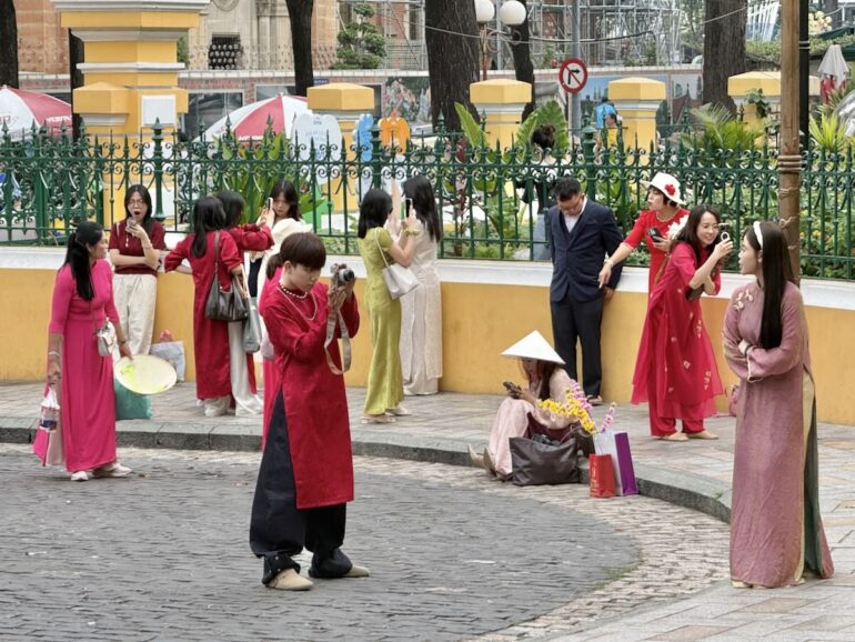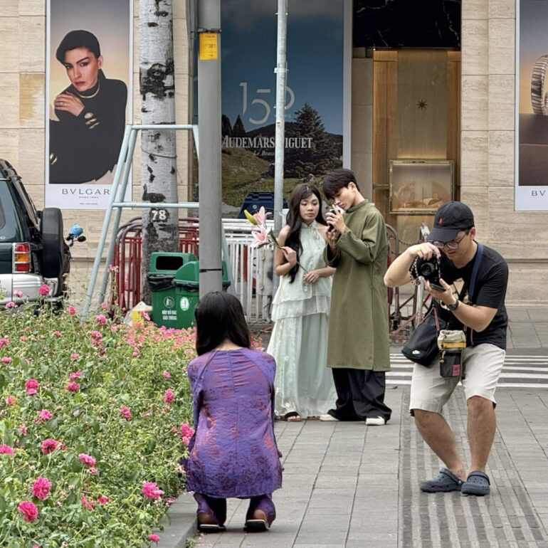 The thing I will remember most from Vietnam, after the motor scooters, was the photo shoots. We were there in advance of the Tet holiday, when locals have a tradition of getting their portrait taken. People were posing everywhere—not just at landmarks, but in front of luxury boutiques like Patek Philippe and Louis Vuitton. I can only imagine how many times we had to be photoshopped out of the background.