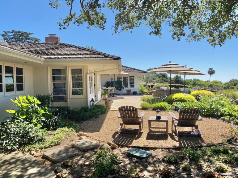1924 adobe on a lot that that backs up against Los Olivos Lane.