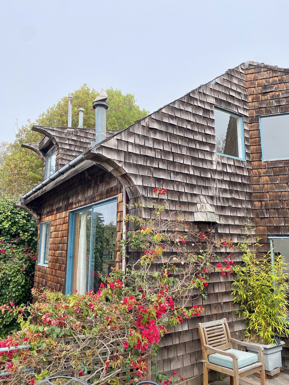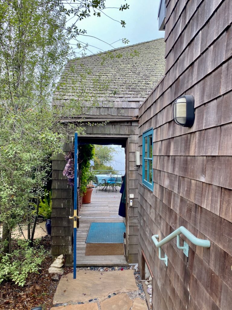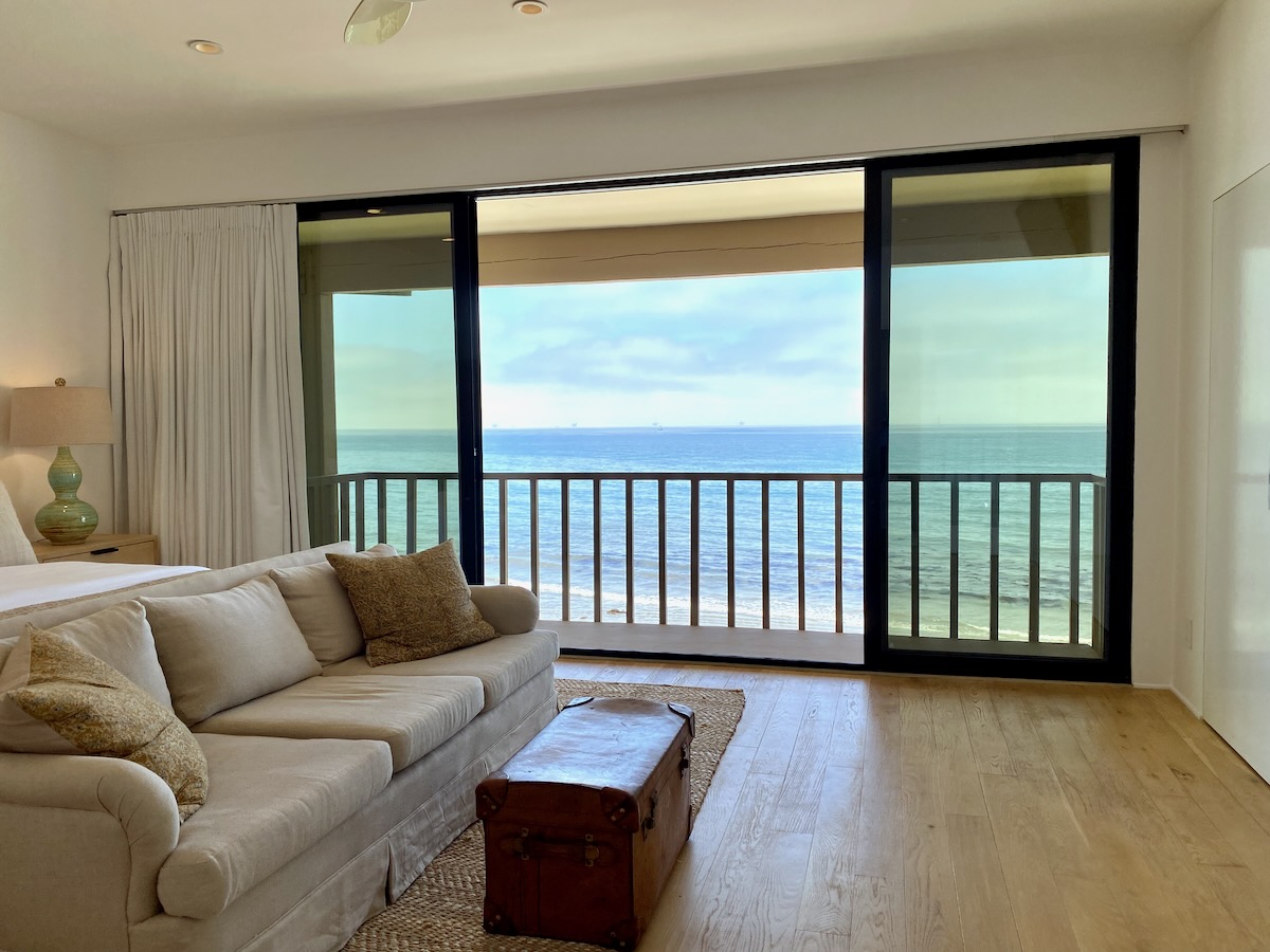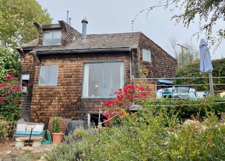 586-square-foot oceanfront cottage with seating areas farther down the bluff.