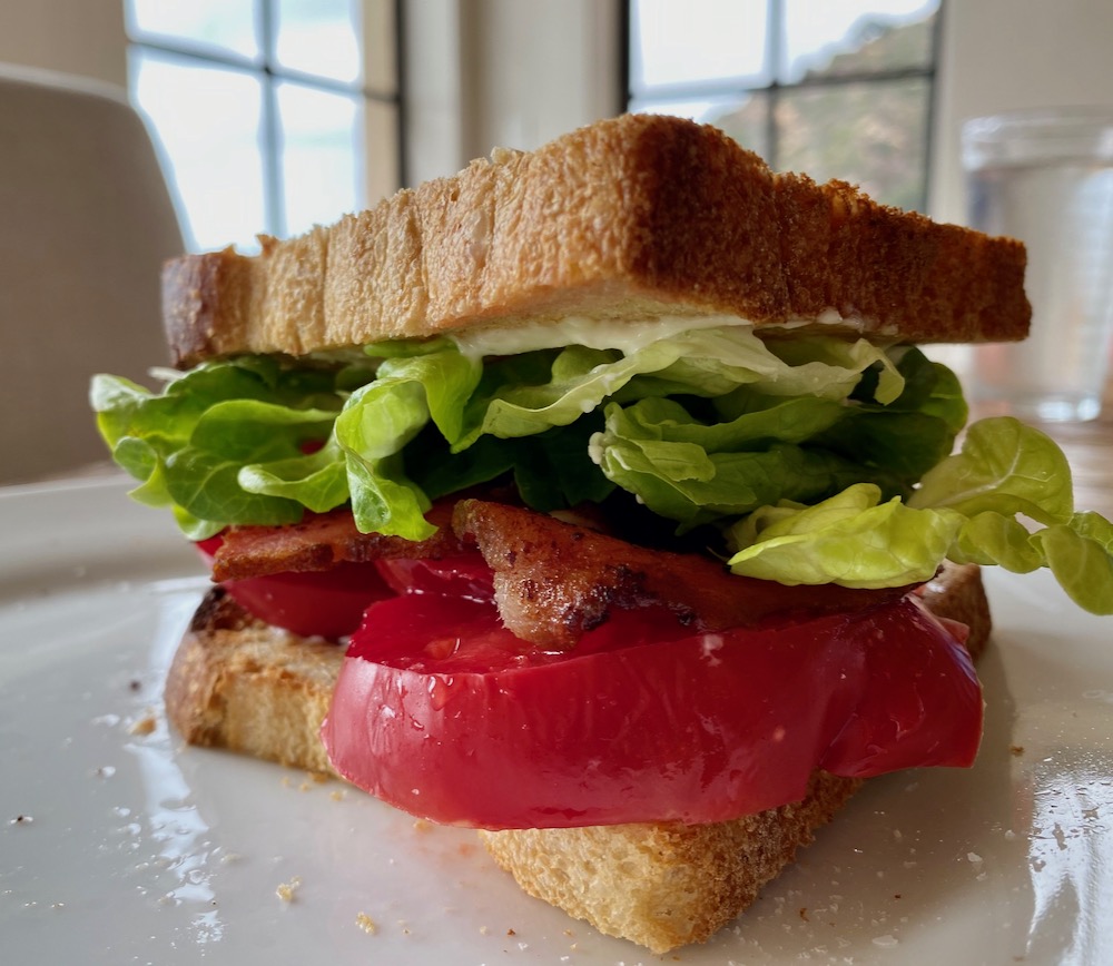 ••• BLT season is an important time in my life, and there are some delicious ones in this town, but no one does it quite the way I want. Bossie’s Kitchen and Helena Avenue Bakery both griddle the bread (I just like it toasted), and Helena uses burrata instead of mayonnaise. (Like I said, they’re both delicious.) So I decided to make my own, which required a different bread than the sourdough I always buy from Bettina. I was delighted to find Riviera Bread‘s sourdough sandwich loaf, which did the job perfectly.