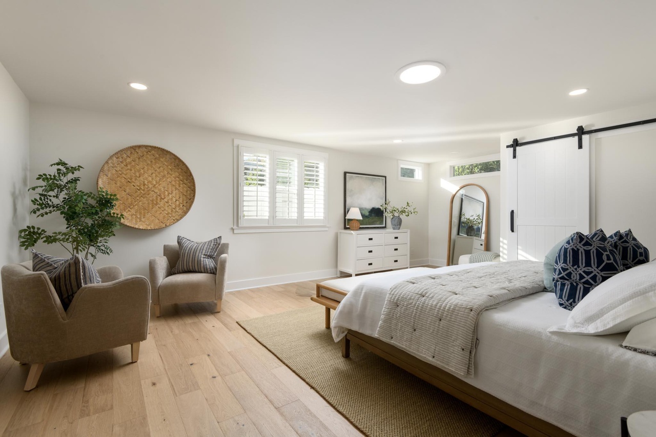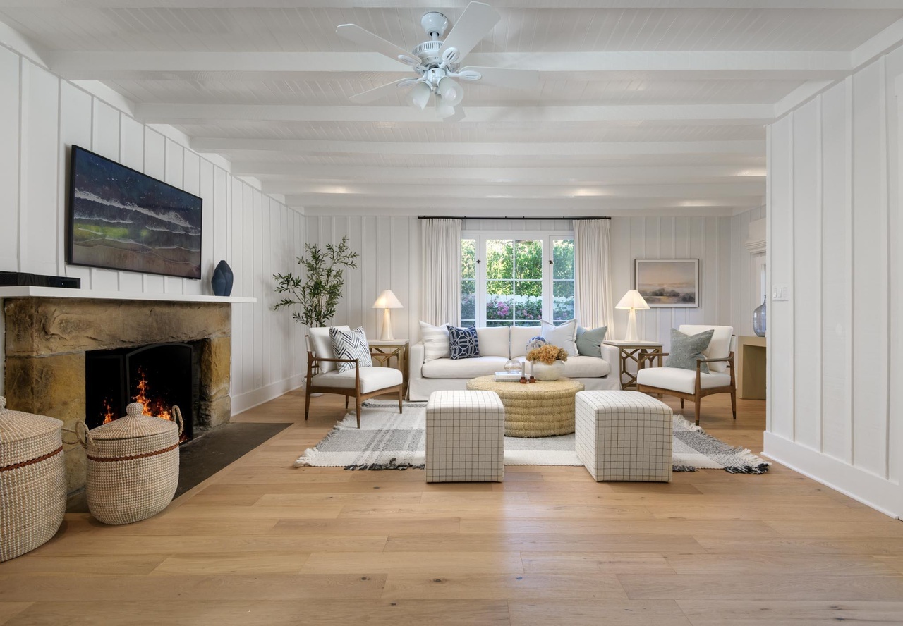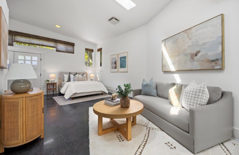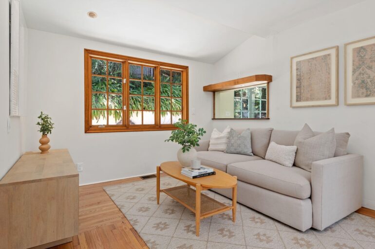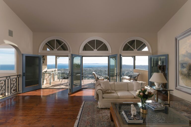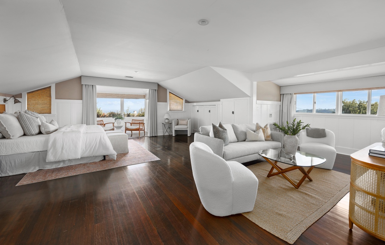 All the Lower Riviera charm you could want is on hand at 804 Moreno Road ($3.495 million), built in 1909 and half hidden behind foliage. It has some tight moments and the low ceilings make rooms a bit dim, but upstairs is a massive primary suite with ocean views. And there’s a guest house that looks related from outside but totally different inside (spare white walls, polished concrete floors).